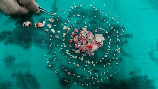 La doctora explica que, según la literatura médica disponible, se sabe que es una dolencia que afecta a la mandíbula superior. "Se habían extraído hasta 37 dientes de un tumor en el pasado. Pero en el caso de Ashik, el tumor fue hallado en lo profundo de la mandíbula inferior y tenía cientos de dientes".