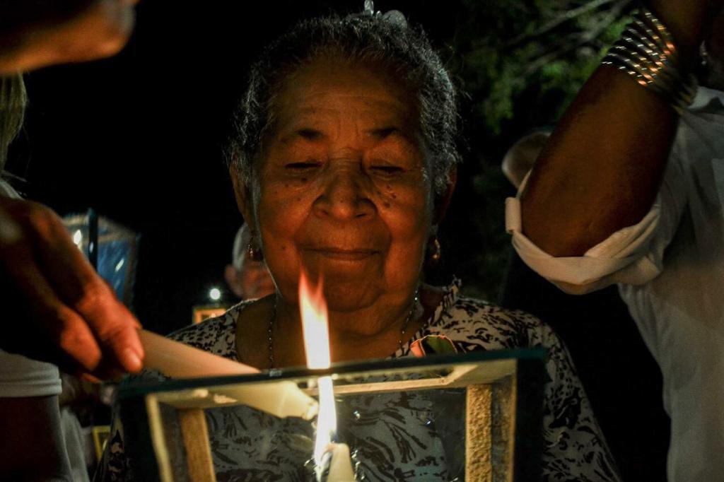 Soledad Acosta, viuda del líder campesino Chucho Pérez, prendió una vela como símbolo de su duelo. ©MARLON MÁRQUEZ.
