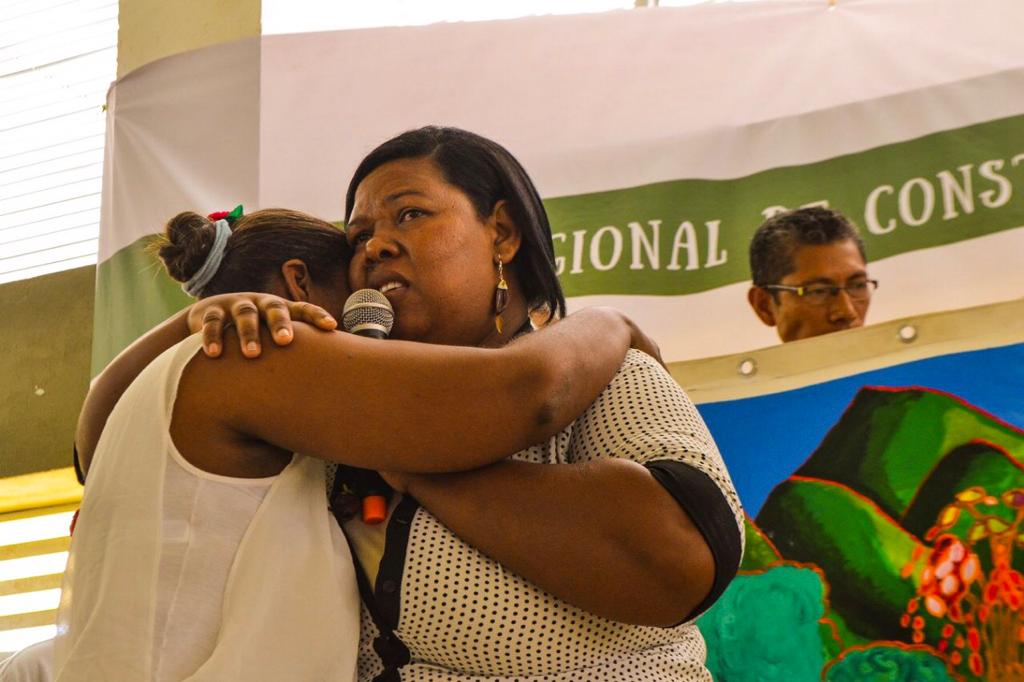 “Esto representa la historia de nuestro pueblo”. El transcurso del relato aguó los ojos de la ponente, lo que incentivó a que víctimas y excombatientes se pararan de sus sillas a abrazarla.