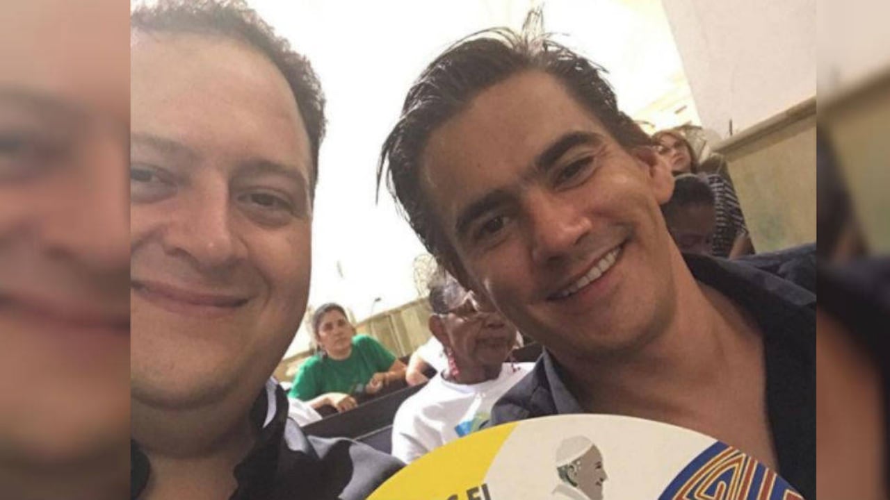 “La Paz hecha realidad, no utopía. Gracias a Su Santidad el Papa Francisco por esos instantes de oración en la Iglesia San Pedro Claver de Cartagena, por la paz y la reconciliación. Foto con Jorge Lara hijo del ministro de Justicia Rodrigo Lara Bonilla Q.E.P.D. asesinado por mi padre”, escribió Juan Pablo Escobar, quien se cambió el nombre a Sebastián Marroquín.