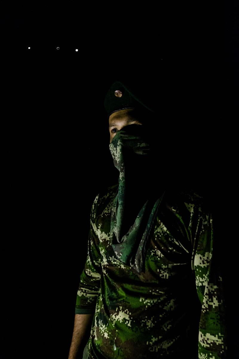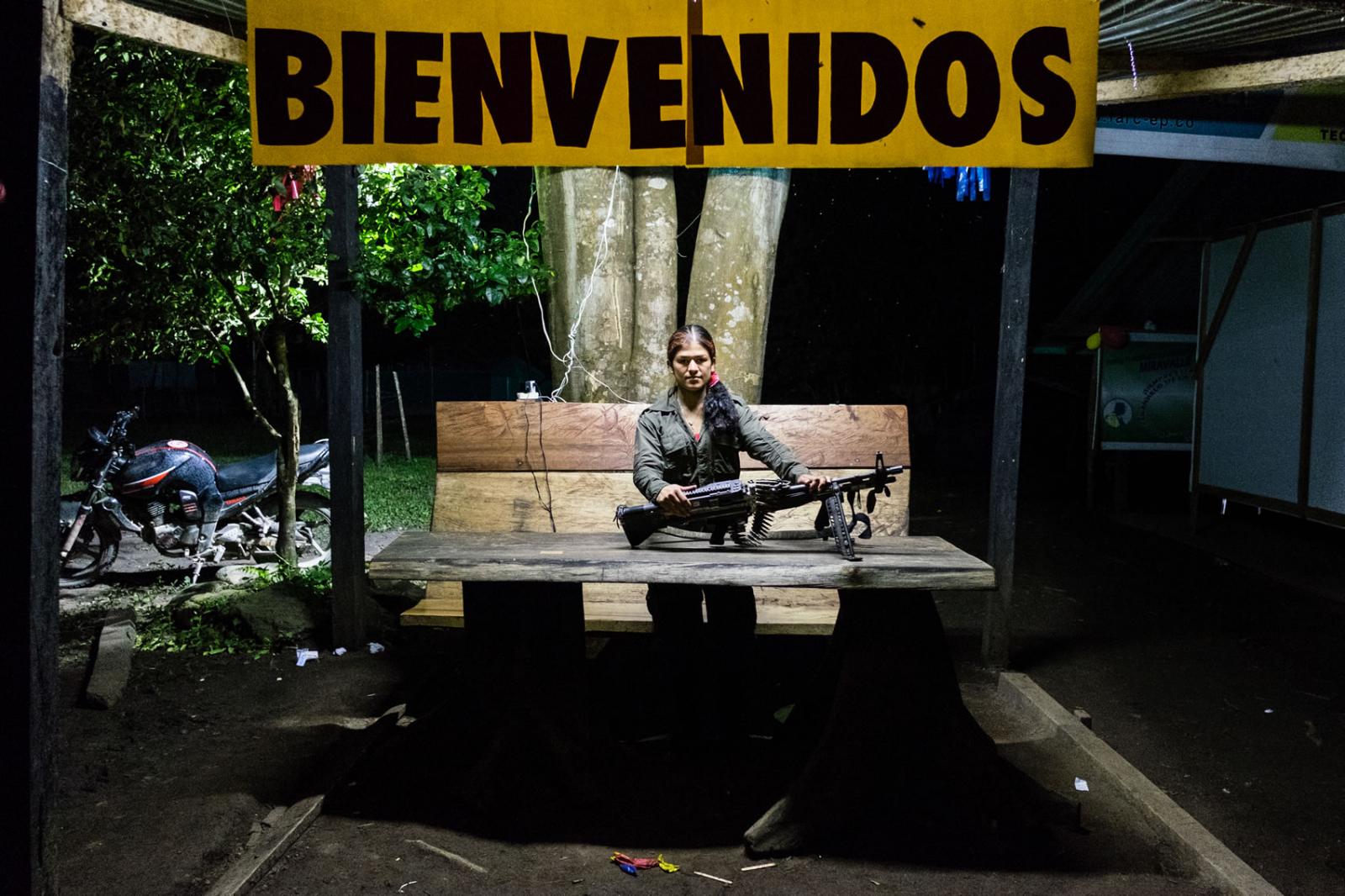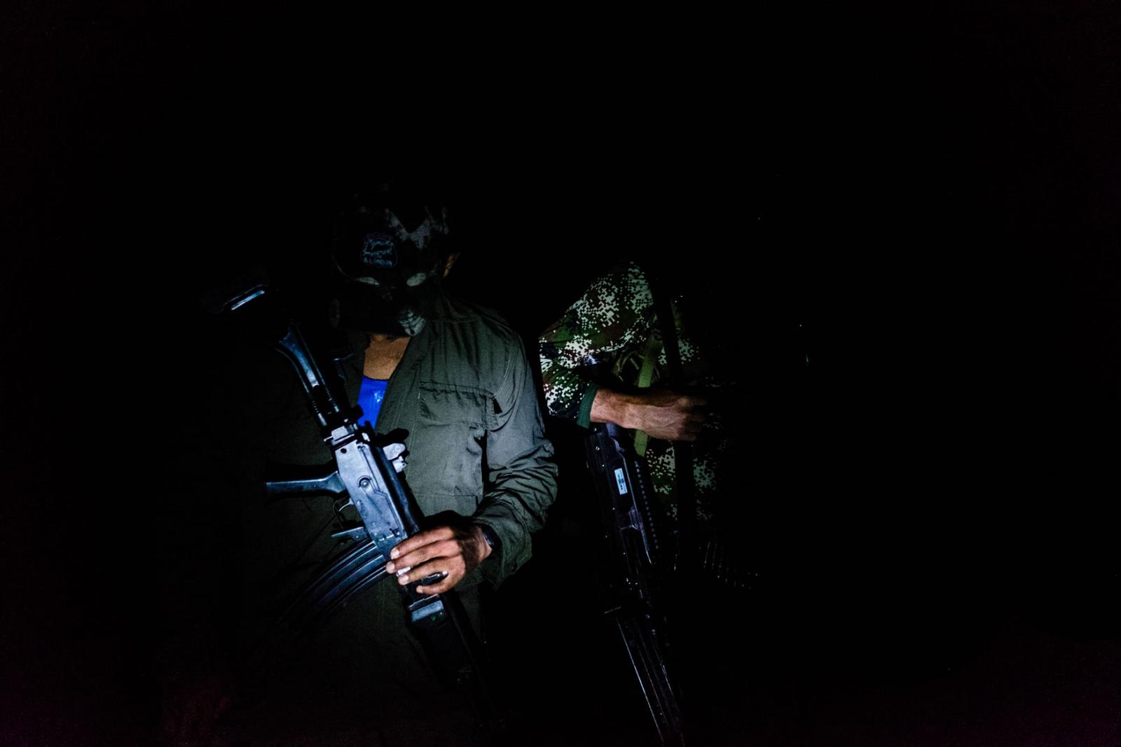 Después, llegamos a la zona de preagrupamiento donde habían estado, hasta hace ocho días, los integrantes de esta guerrilla, cuando por fin se terminaron (medianamente) las viviendas para que las habitaran.Hoy es un día especial. Mañana llegará un helicóptero con integrantes de la ONU, su objetivo será llevarse todas las armas de esta columna guerrillera. Llega la noche y el comandante autoriza que 14 personas con uniforme militar bajen de la loma. Tienen algunas armas. “Son las que tenían para hacer guardia, el resto ya las tiene la ONU en su poder”, me dijo Diego, el encargado de comunicaciones de este lugar.