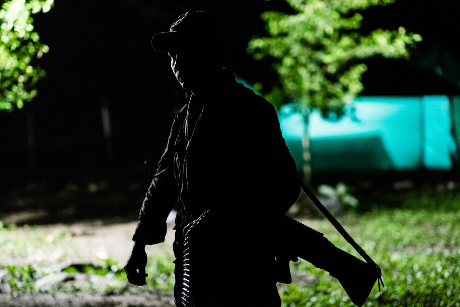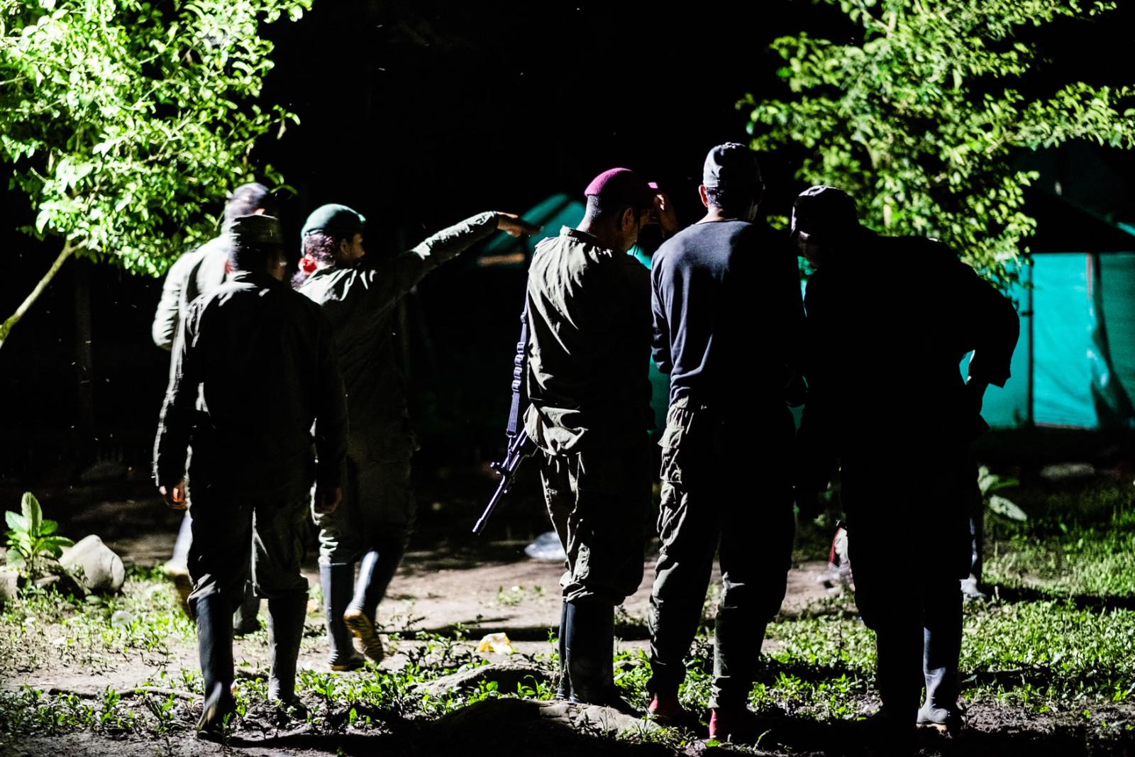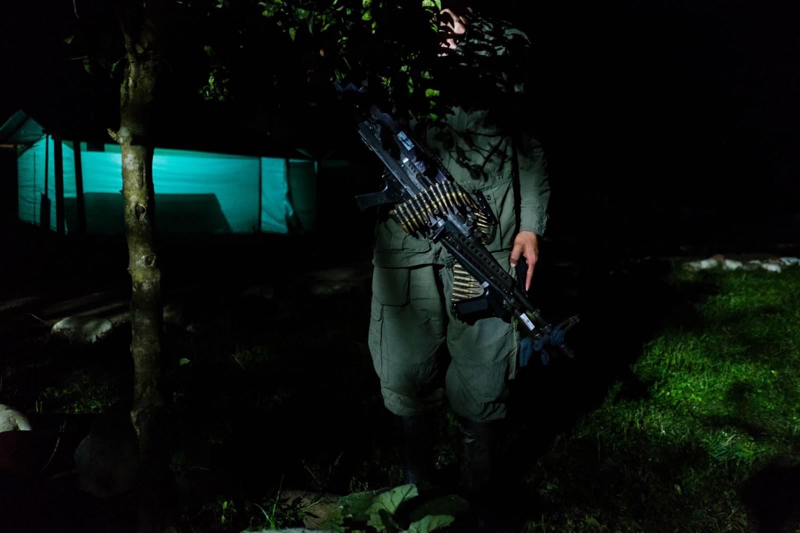 Después, llegamos a la zona de preagrupamiento donde habían estado, hasta hace ocho días, los integrantes de esta guerrilla, cuando por fin se terminaron (medianamente) las viviendas para que las habitaran.Hoy es un día especial. Mañana llegará un helicóptero con integrantes de la ONU, su objetivo será llevarse todas las armas de esta columna guerrillera. Llega la noche y el comandante autoriza que 14 personas con uniforme militar bajen de la loma. Tienen algunas armas. “Son las que tenían para hacer guardia, el resto ya las tiene la ONU en su poder”, me dijo Diego, el encargado de comunicaciones de este lugar.