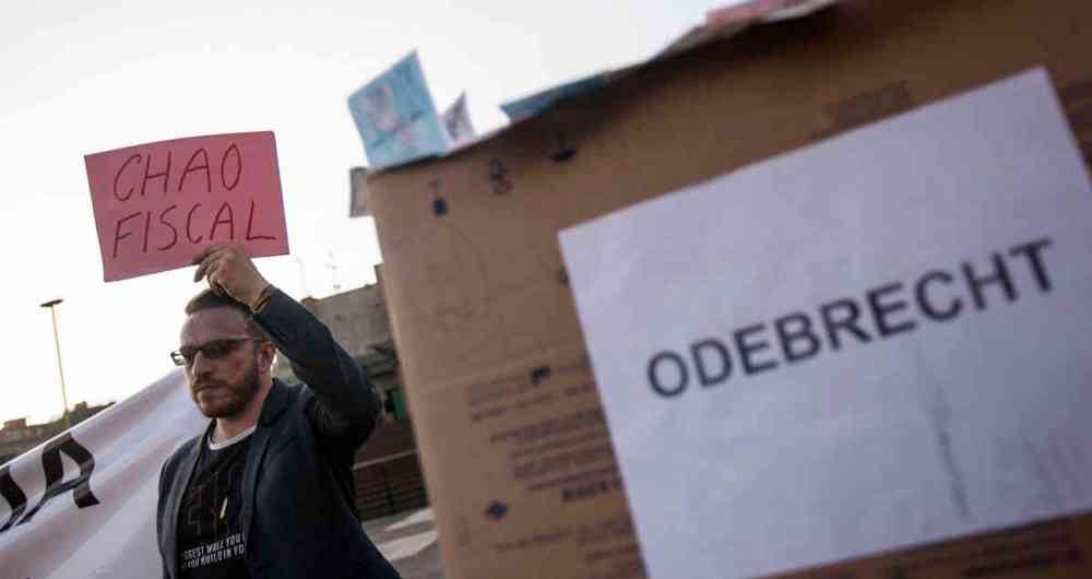 Con una proyección del letrero de Odebrecht en la fachada de la Fiscalía finalizó la jornada. Foto: Diana Rey Melo