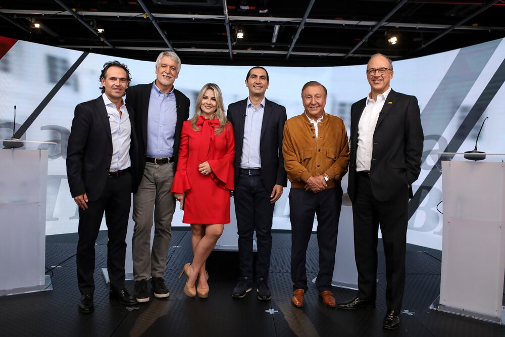 El debate acabó en buenos términos, con los precandidatos junto a Vicky Dávila, directora de SEMANA. Foto: Alexandra Ruiz.