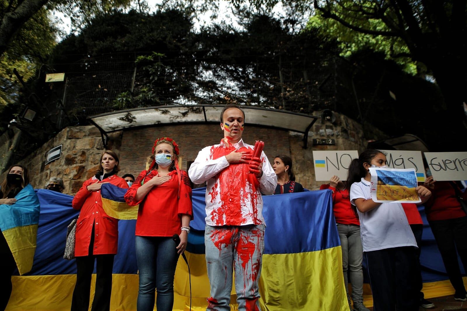Conmovedoras imágenes dejan protestas en Colombia por rechazo al conflicto Rusia-Ucrania