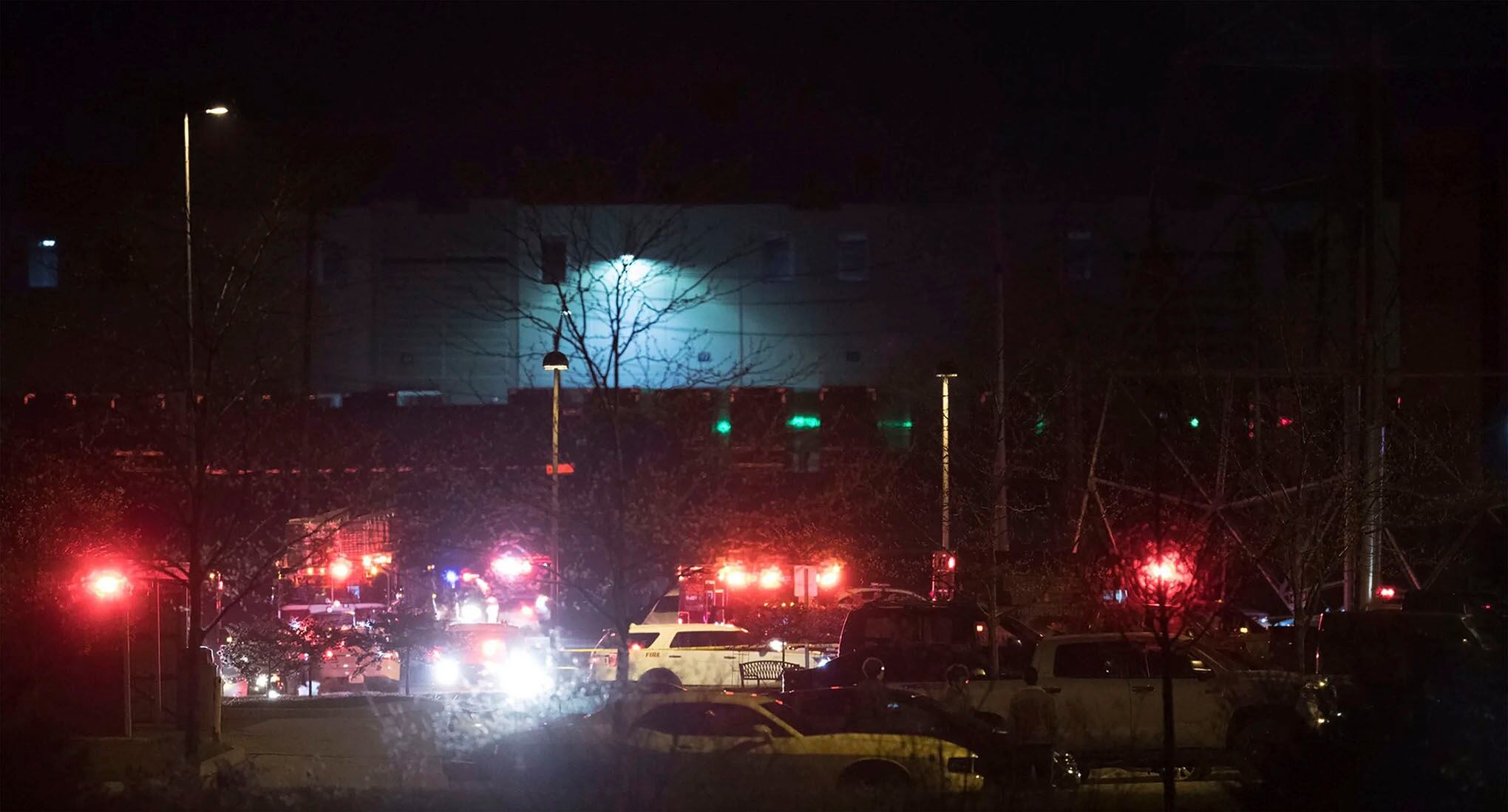 Foto: APLa escena fuera de una instalación de FedEx en Indianápolis donde, según informes, varias personas recibieron disparos la noche del jueves, 15 de abril de 2021. Foto: Mykal McEldowney / The Indianapolis Star a través de AP.