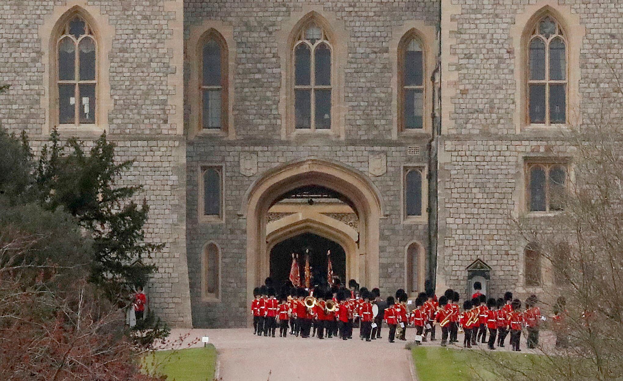 Foto: APLos soldados ensayan mientras marchan fuera del Castillo de Windsor, el jueves 15 de abril de 2021. El príncipe Felipe de Gran Bretaña, esposo de la reina Isabel II, murió el viernes 9 de abril a los 99 años. Su funeral tendrá lugar el sábado en el Castillo de Windsor. Foto: AP / Frank Augstein.