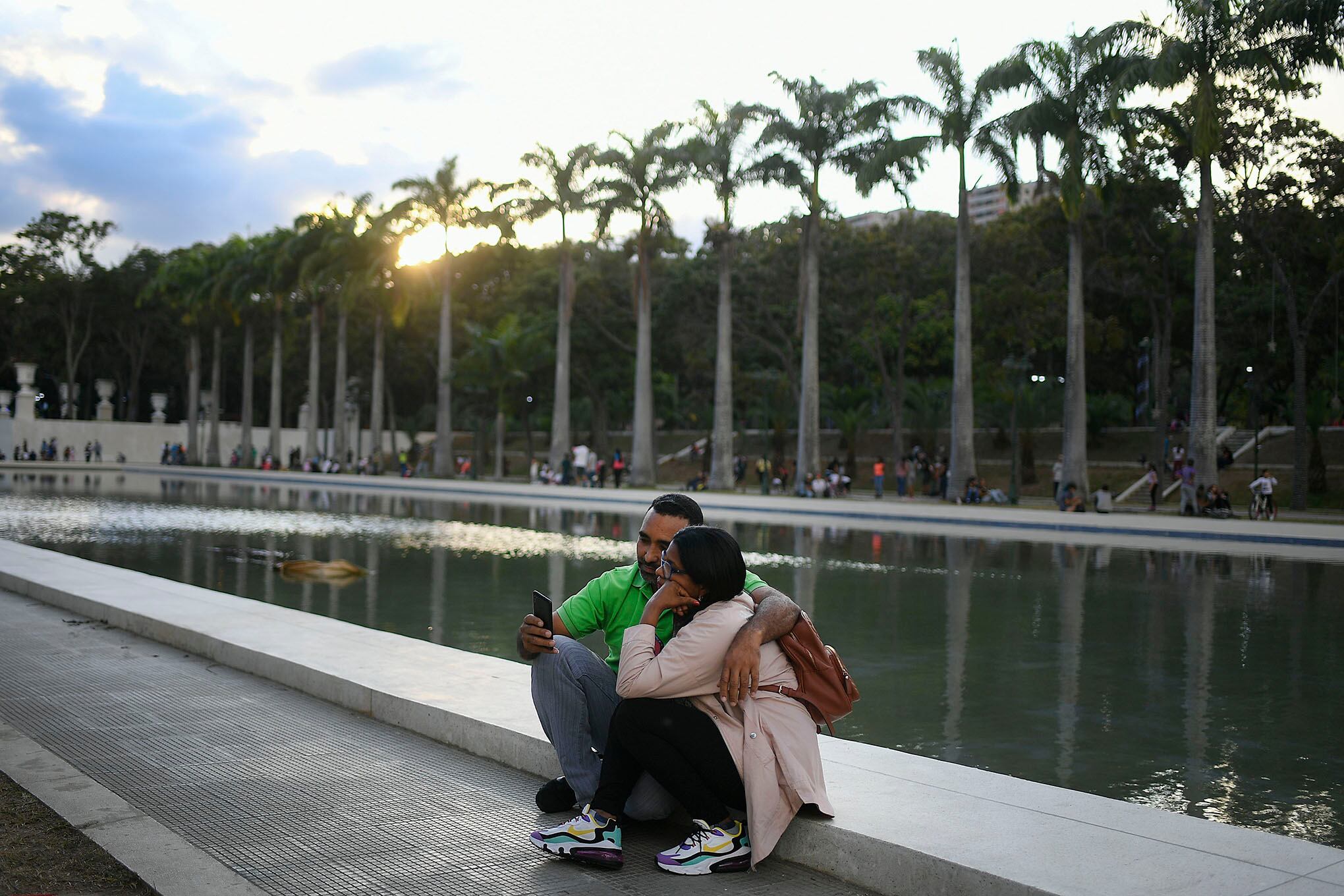 Foto: APUna pareja se toma una selfie en Los Próceres Boulevard en Caracas, Venezuela, en medio de la pandemia de coronavirus. Foto: AP / Matias Delacroix.