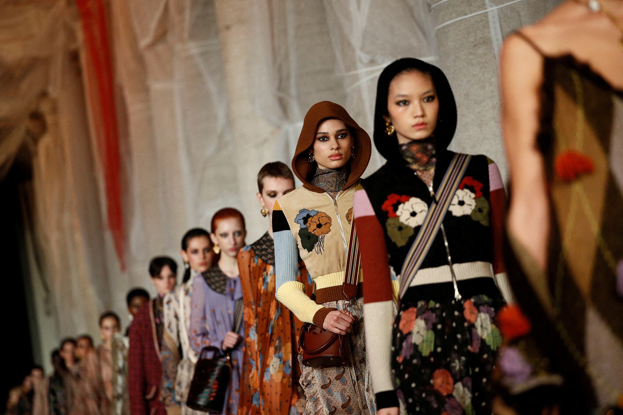 Los modelos se encuentran en el backstage antes de la colección Etro Fall/Winter 2023/2024 durante la Semana de la Moda en Milán, Italia, el 22 de febrero de 2023.