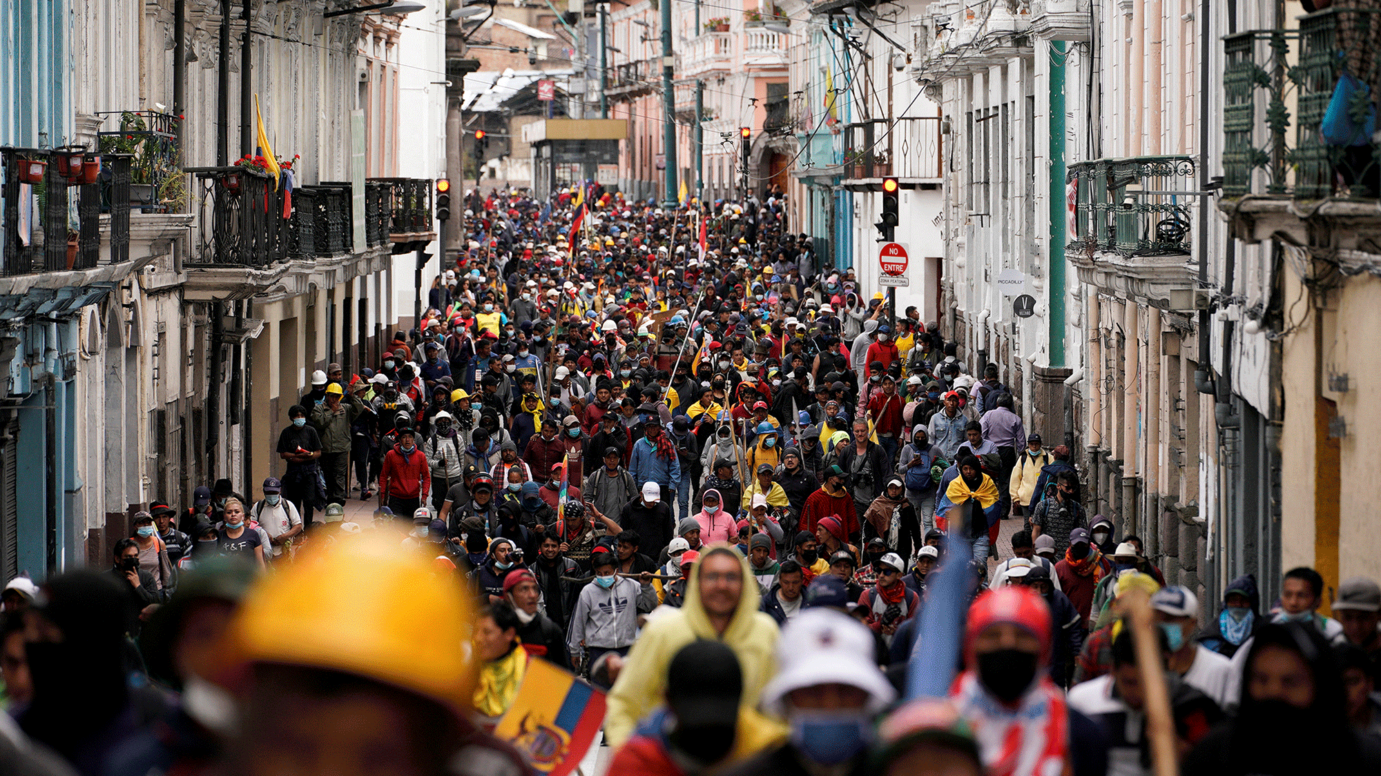 Los manifestantes marchan para exigir que el presidente de Ecuador, Guillermo Lasso, aborde el tema de los aumentos de precios del combustible, los alimentos y otros productos básicos que han provocado 10 días de manifestaciones en todo el país. Quito, Ecuador, el 22 de junio de 2022. Foto: Reuters/Santiago Arcos