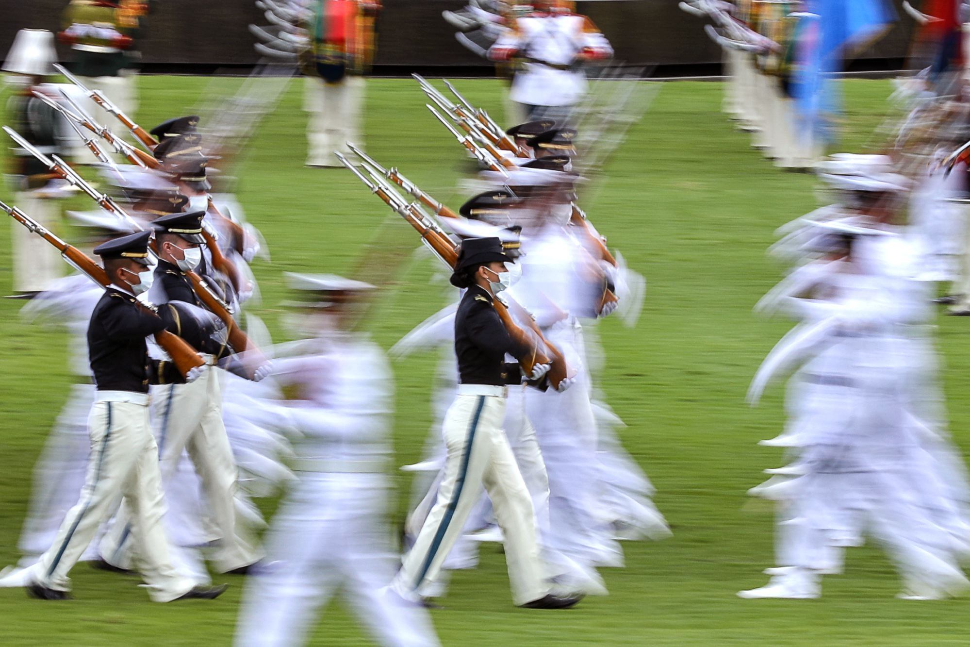 El tradicional desfile militar de la conmemoración del 20 de julio se realizó a puerta cerrada en la Escuela Militar José María Córdoba. Foto: Juan Carlos Sierra-Revista Semana.