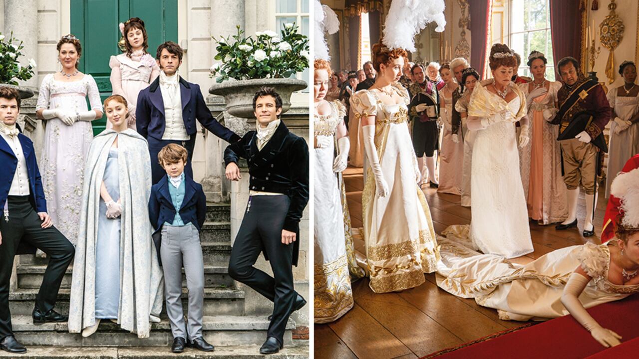Ellen Mirojnick, diseñadora del vestuario, le contó al mismo diario que lideró un departamento de 238 personas para confeccionar a mano cerca de 7.500 atuendos, que tomaban solo las líneas básicas de la moda de aquel tiempo. De resto, se tomó libertades, ya que necesitaba que los atavíos fueran pícaros y escandalosos, sobre todo en el caso de las Featherington, la familia rival de los Bridgerton, cuyo estilo, afirma, tiende más a las Kardashians que a las heroínas de Jane Austen.