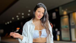 Pero es el último atuendo de la caleña el que dejó a sus seguidores sin aire, pues es un bikini diminuto con panty negro y brasier blanco que no deja nada a la imaginación, pues raya con el estilo “hilo” que se entalla a la perfección en el cuerpo de Caterine.