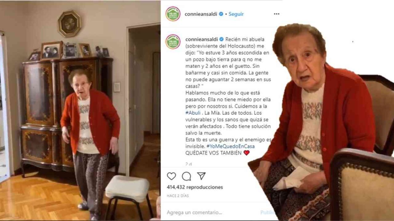 La periodista argentina Connie Ansaldi conmovió a sus seguidores de Instagram con un video de su abuela, Elsa Soslowska. A sus 96 años, la mujer le hace un llamado a todo el mundo para que cumplan con el aislamiento social para combatir el covid-19.