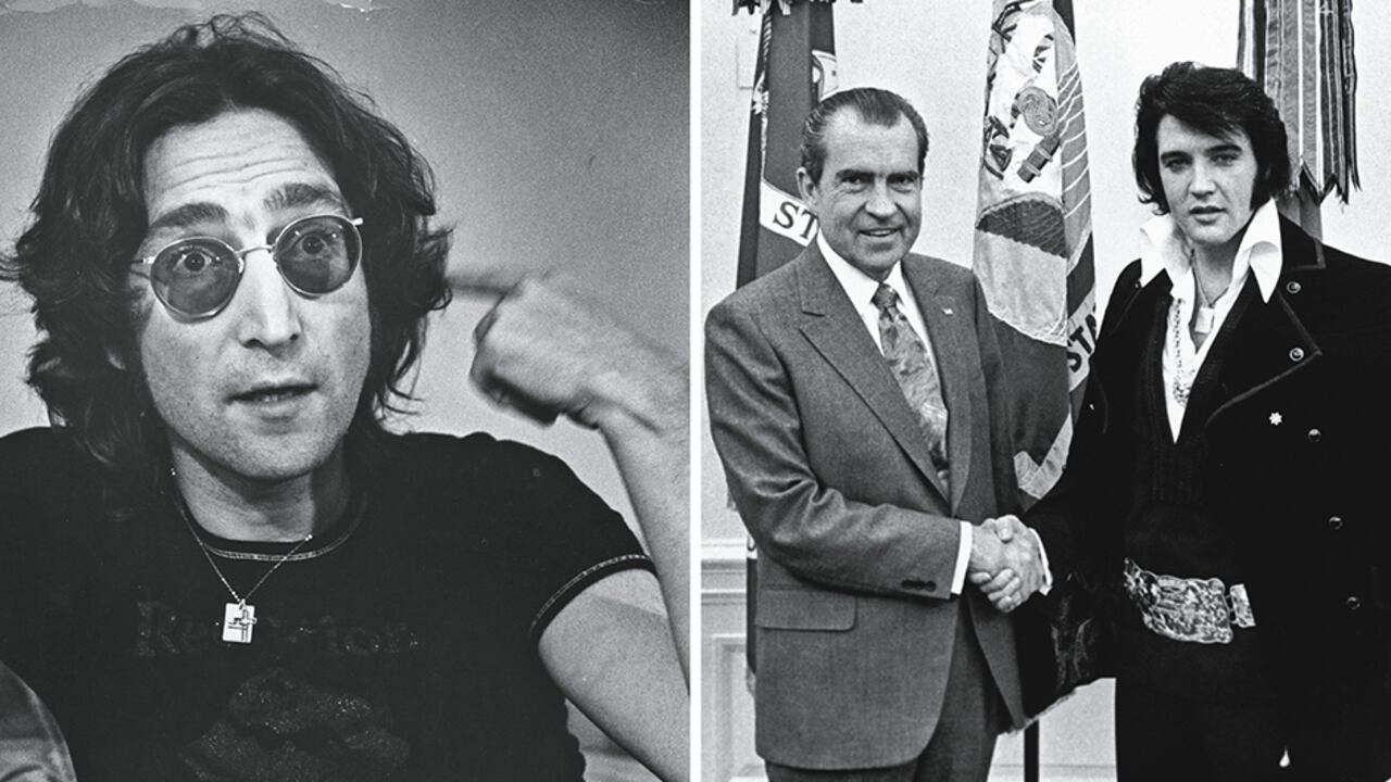 Según Harris, el presidente reclutó como espía a Presley, de quien era amigo cercano, para que recogiera tanta información como pudiera. John y Elvis se conocieron en 1965 y, según Harris, fue odio a primera vista, un gran momento de desilusión para Lennon, quien de joven fue fanático de Presley.