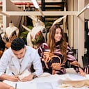 El peso de ese legado llevó a sus fundadores a ubicar su empresa en Iza. Gómez, artista plástico bogotano, y Patiño, diseñador textil sogamoseño, se conocieron en 2017 durante unos talleres. Descubrieron que compartían intereses y preguntas alrededor de las fibras y así nació, ese mismo año, el taller de moda artesanal Tejidos Rebancá, llamado así por una planta que se utiliza mucho en la cocina boyacense.