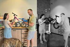 En la publicación, los deportistas llevan una bicicleta, luego ella se quita el casco que dice “mamá” en la parte de atrás, al igual el de su esposo que dice “papá”, se abrazan sonriendo y se van caminando hasta aparecer en sus manos con una bicicleta de madera con el número 220.