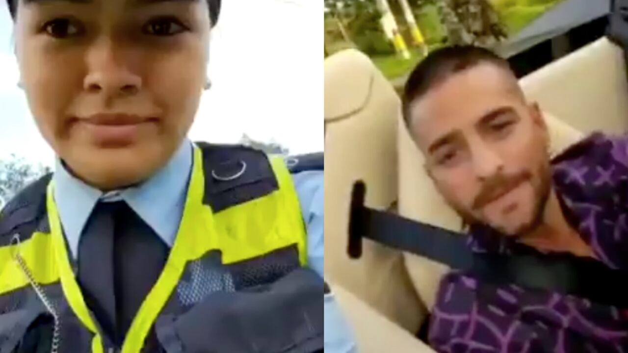 No se sabe si el intérprete de Hawái incumplió algún tipo de norma o simplemente fue detenido en su vehículo por cuestiones de rutina. Lo cierto es que la oficial de Tránsito no desaprovechó el momento y se grabó con el famoso artista paisa.