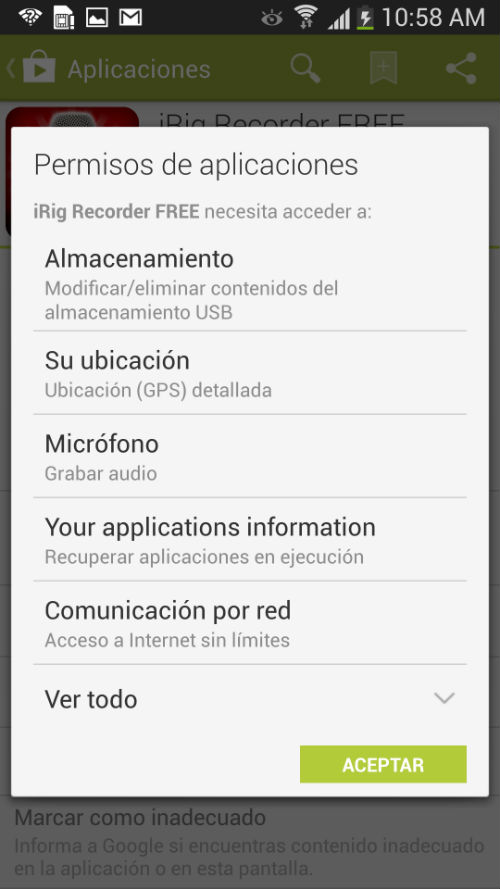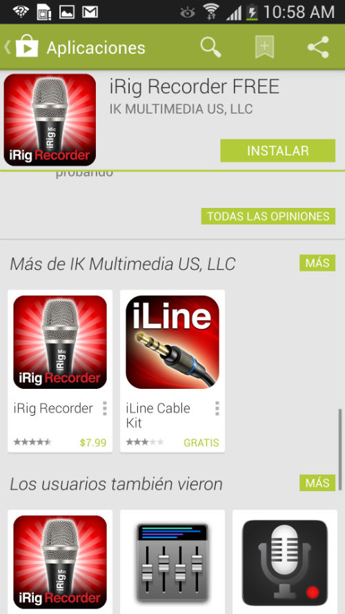 1. Busque la aplicación en Play Store. En el buscador digite iRig Recorder: