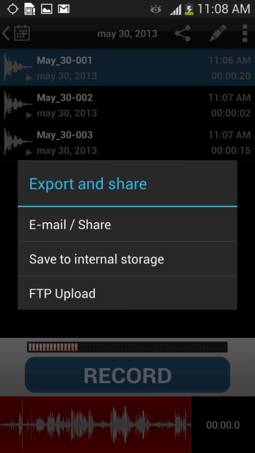 7. Por último envíe el audio al correo electrónico con el que quiera compartir el archivo de audio: