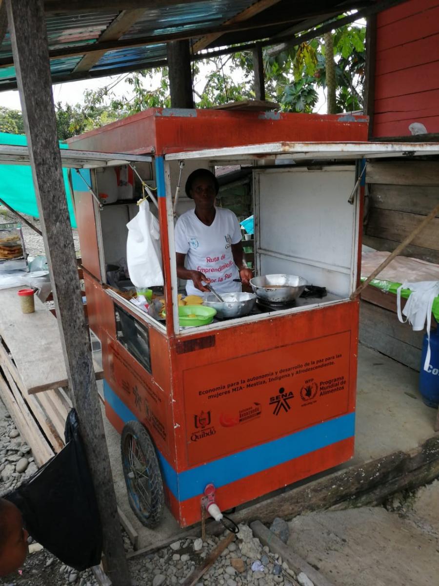 Ella es la líder del grupo de mujeres de Tutunendo, a unos 40 minutos de Quibdó. A través del proyecto de Empoderamiento Económico a Mujeres, implementado por el Programa Mundial de Alimentos de las Naciones Unidas en Colombia – WFP (por sus siglas en inglés) y la secretaria de la Mujer Quibdó, ha hecho parte de los procesos de formación para prevenir la violencia contra la mujer, y promover su empoderamiento económico.