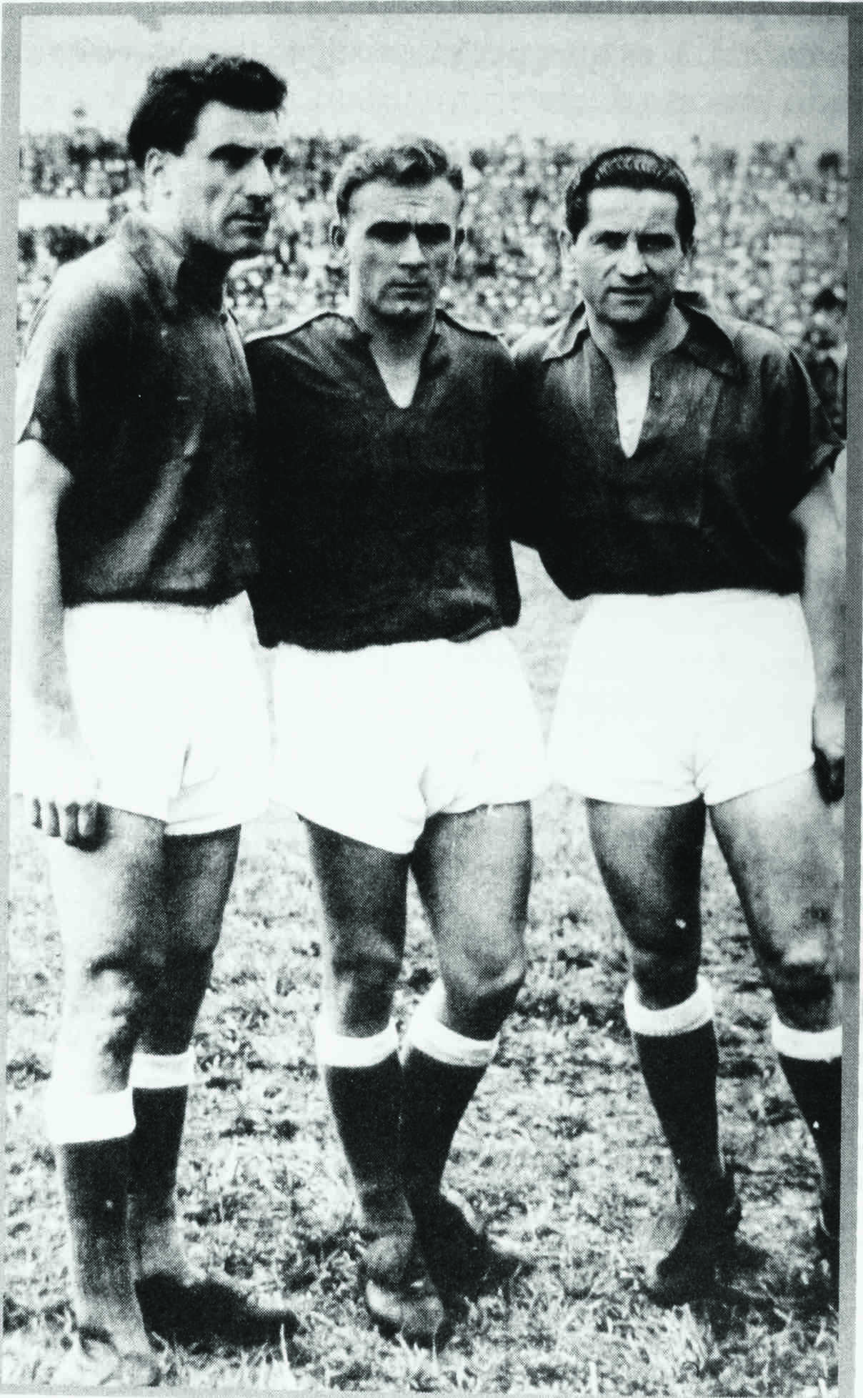 Los legendarios jugadores de Millonarios Rossi, Di Stéfano y Pedernera, en la época de El Dorado del fútbol colombiano.