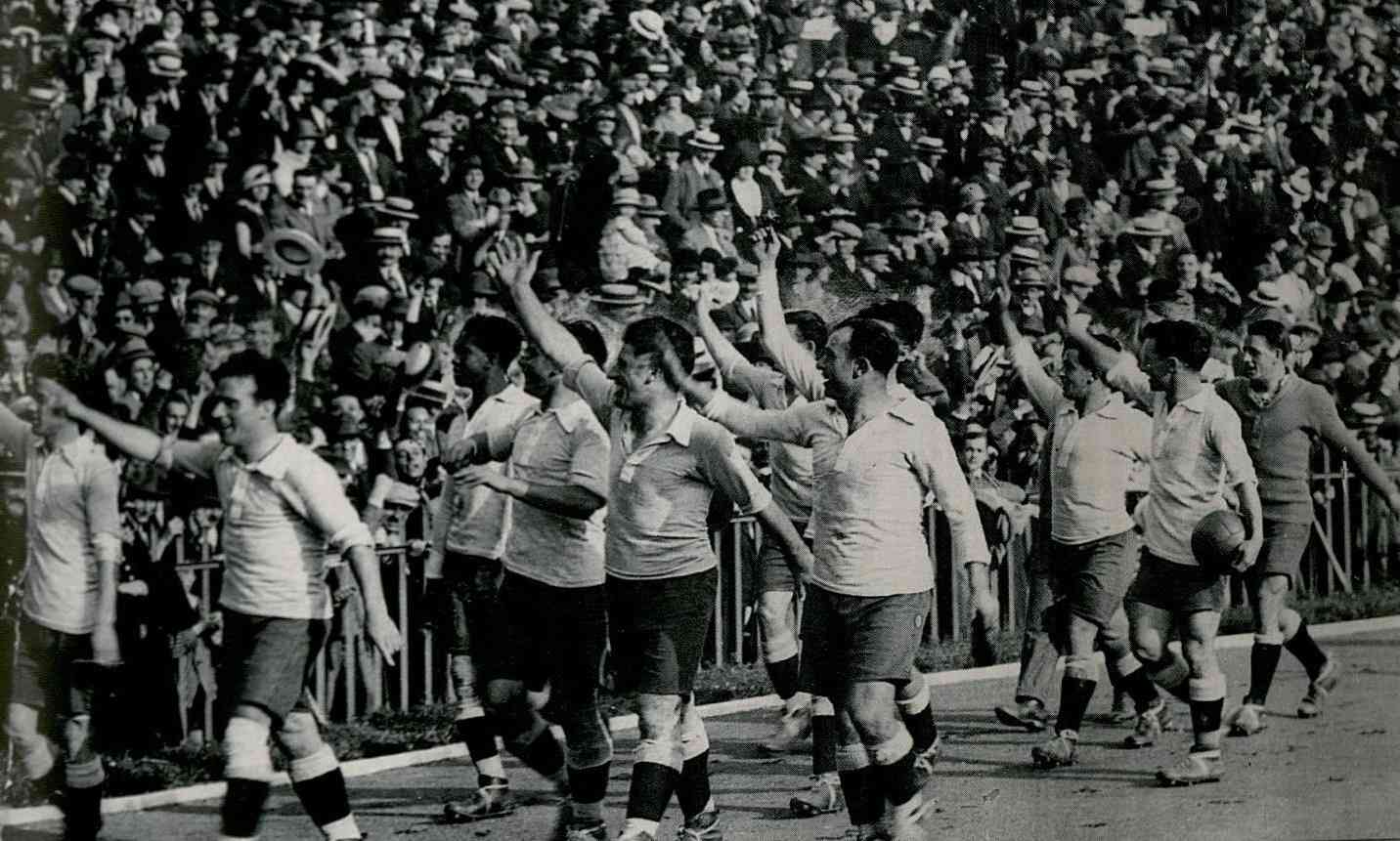 Uruguay, en plena vuelta olímpica, tras ganar la medallade oro en los Juegos Olímpicos de París, en 1924