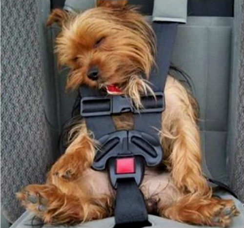 Ante todo la seguridad. Después de un día de compañía a su amo, lo mejor es relajarse en el carro mientras regresa a casa.