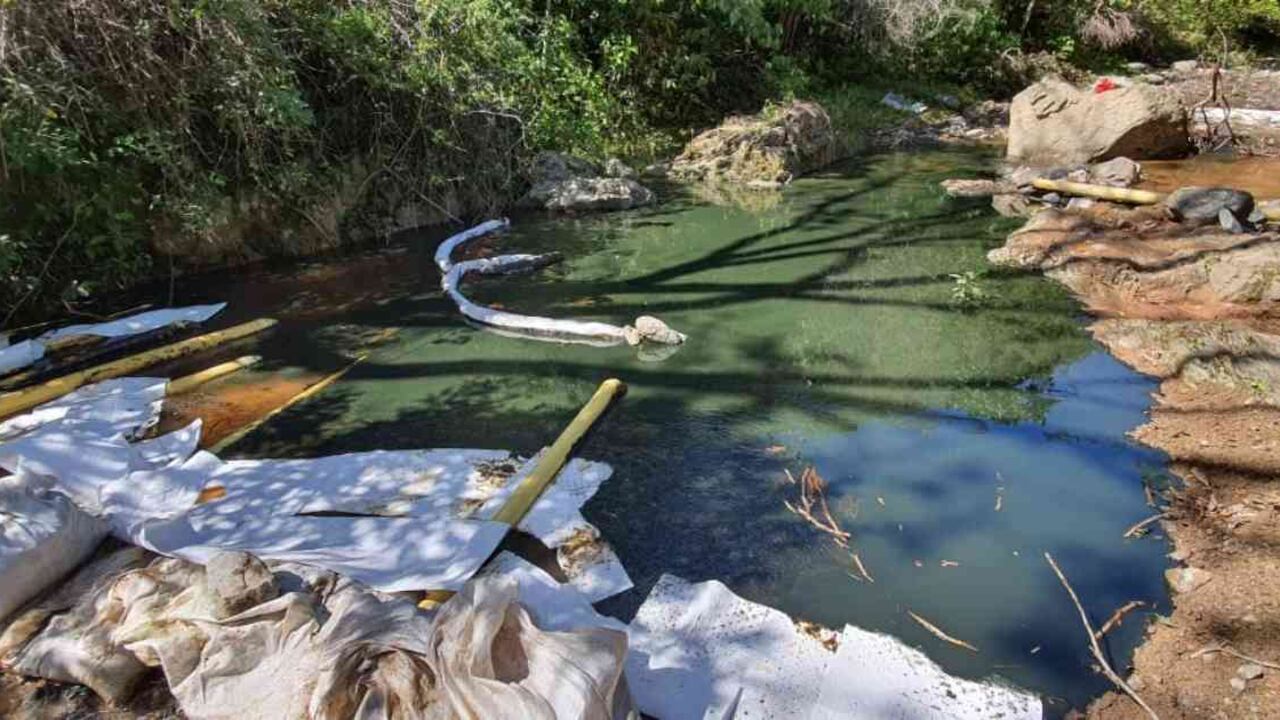 Derrame de crudo tiñó de negro quebrada que nutre al río Tarra