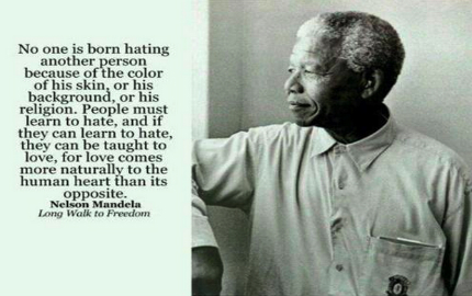 “Nadie nace odiando a otra persona por el color de su piel, su herencia o su religión. La gente necesita aprender a odiar, porque si aprenden a odiar pueden aprender a amar ya que el amor es más natural al corazón humano que su opuesto”.