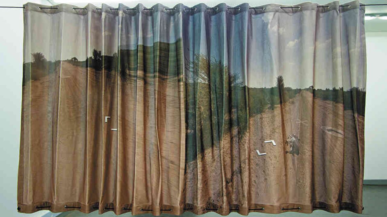 También fuerza representaciones virtuales o artificiales en el espacio físico del campo, y viceversa. En un catálogo de Semex, la mayor inseminadora del mundo, notó que las fotos de los toros tienen de fondo banners con fotos de un campo estático. Y sin embargo las fotos fueron tomadas en el campo real. El artista, entonces, pone esta imagen en crisis al ubicarla en otro contexto: lleva a su burro helicóptero a la ciudad y usa el banner que representa el lugar que habita para hacerle una sesión de fotos.