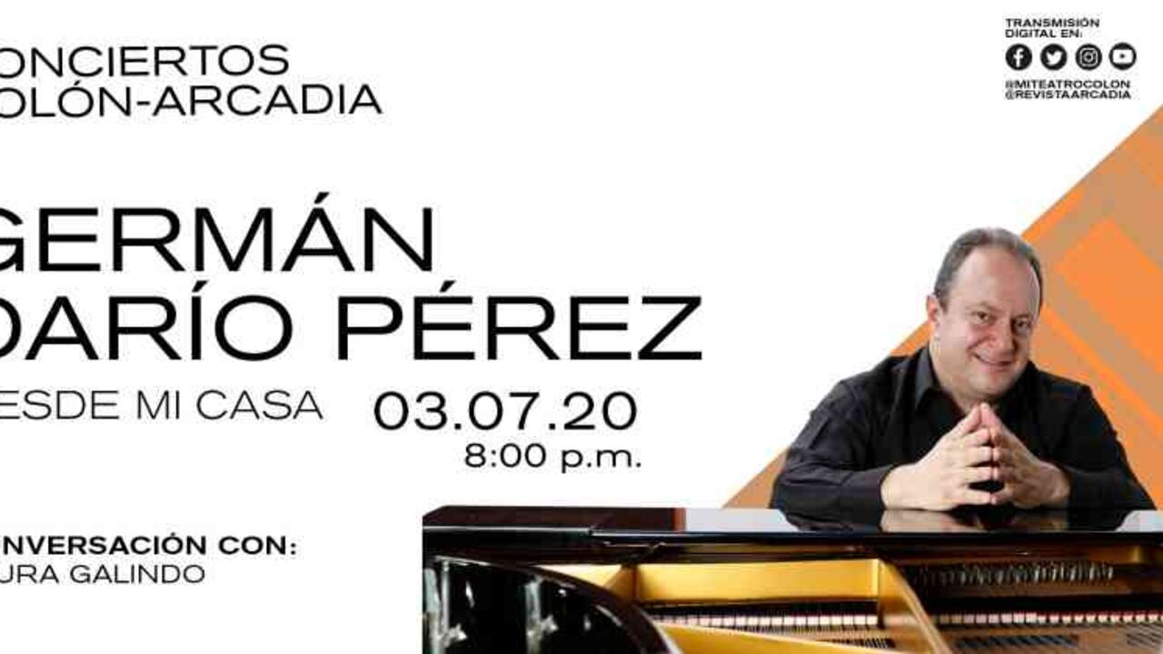 El viernes 3 julio, la velada comienza a las 8pm con una conversación entre Germán Darío Pérez y la también pianista y periodista musical, Laura Galindo. Hablarán sobre el instrumento que los enamoró, sobre la carrera y las composiciones de Pérez, y sobre el repertorio del concierto en el Colón.
