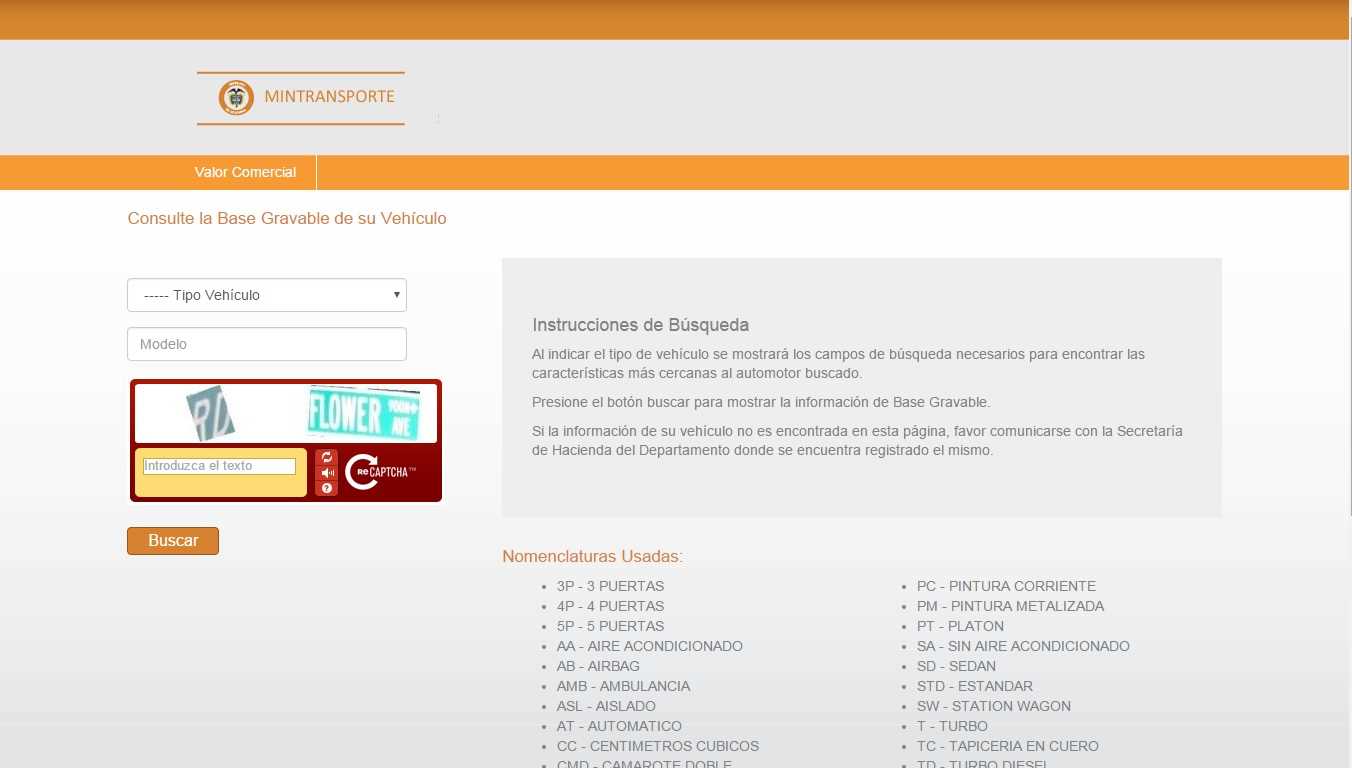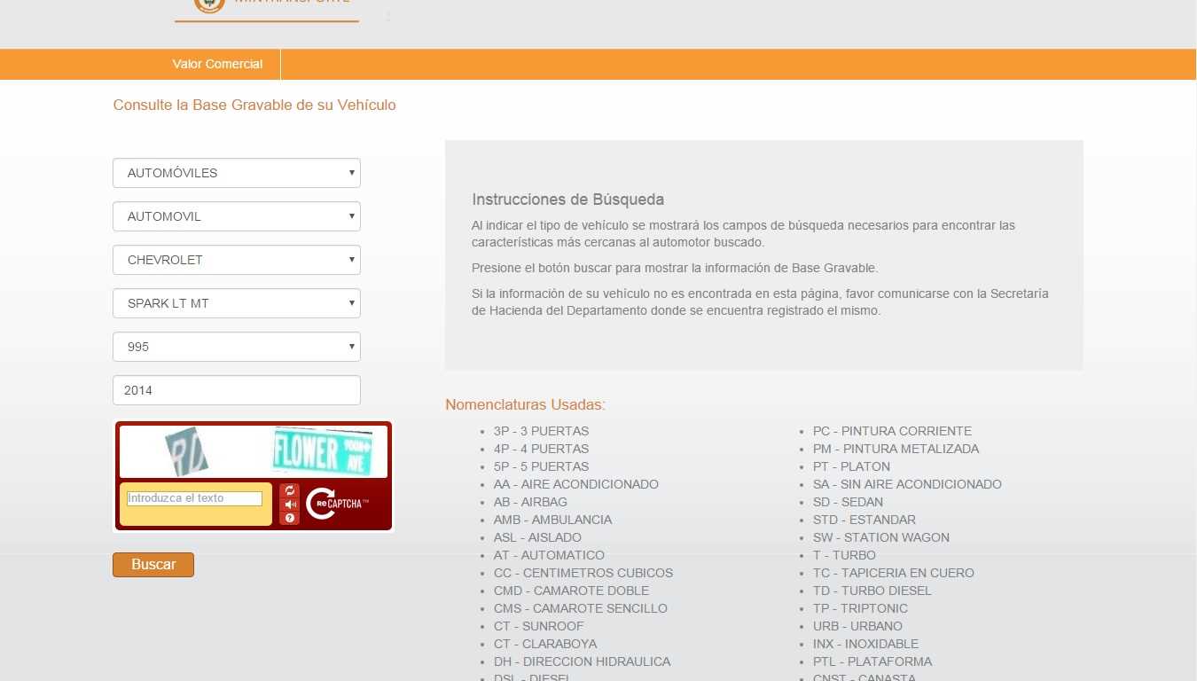 4. Finalmente, la página le arrojará los datos correspondientes al avalúo de su vehículo. No obstante, es recomendable que verifique en las tablas que ya expidió el Ministerio en https://www.mintransporte.gov.co/Documentos/Normatividad/Proyectos y que ya le pusimos los links correspondientes arriba.