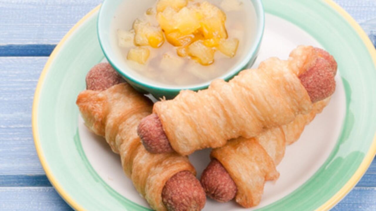 Los pasabocas estrella de la noche son estas salchichas arropadas en hojaldre. Su envoltura los aísla del frío y son muy fáciles de preparar.