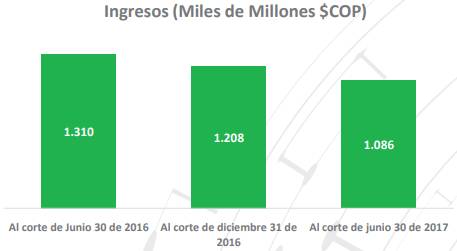 Por su parte, el saldo de la deuda financiera aumentó en 4,3% respecto a diciembre de 2016 y alcanzó un saldo de $208.516 millones al cierre de junio de 2017.