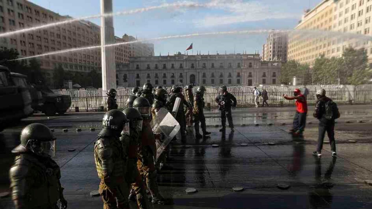 Si bien no han sido masivas, las protestas se han concentrado en las cercanías del palacio presidencial de La Moneda, en el centro de Santiago, donde centenares de personas se han enfrentado violentamente con la Policía, que reprime las movilizaciones con carros blindados que lanzan agua con químicos y gases lacrimógenos.