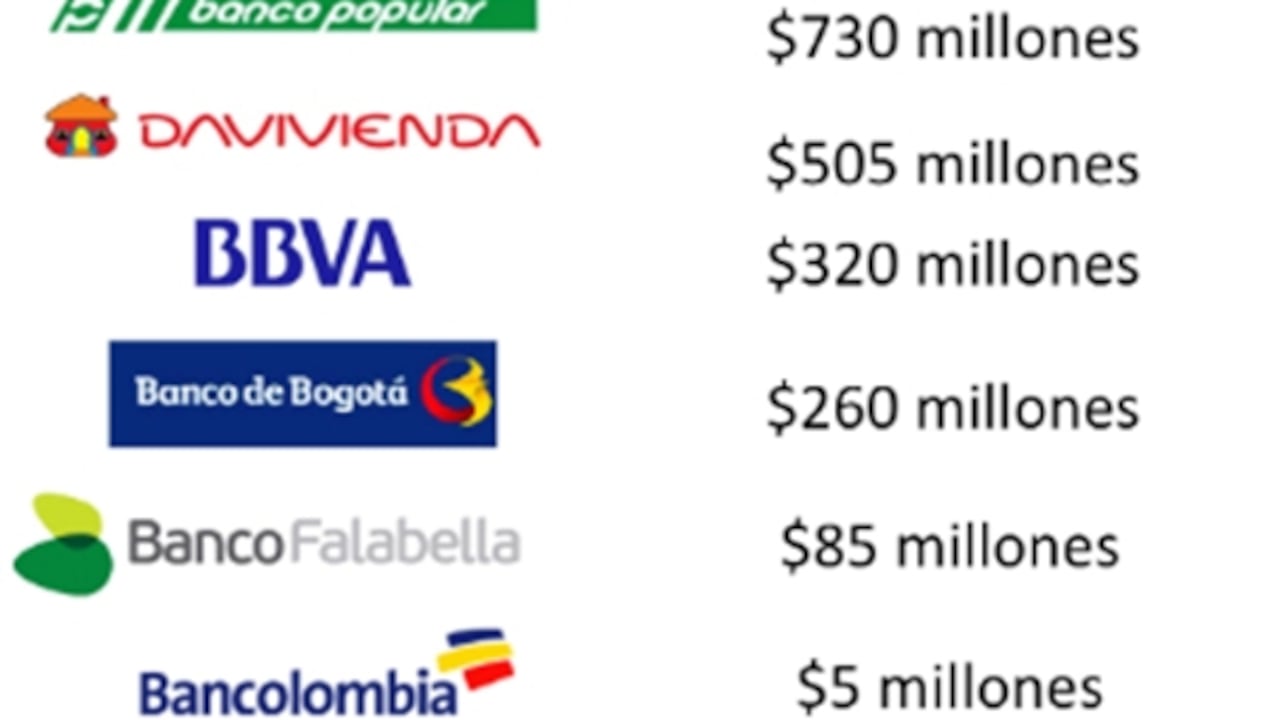 En seguimiento de la lista, en segundo lugar se encuentra Davivienda con sanciones por $505 millones, seguida por el BBVA que acumula multas por $320 millones, del mismo modo que Banco de Bogotá que se instala de cuarto en la lista con $260 millones y Banco Falabella cierra los primeros cinco con $85 millones.
