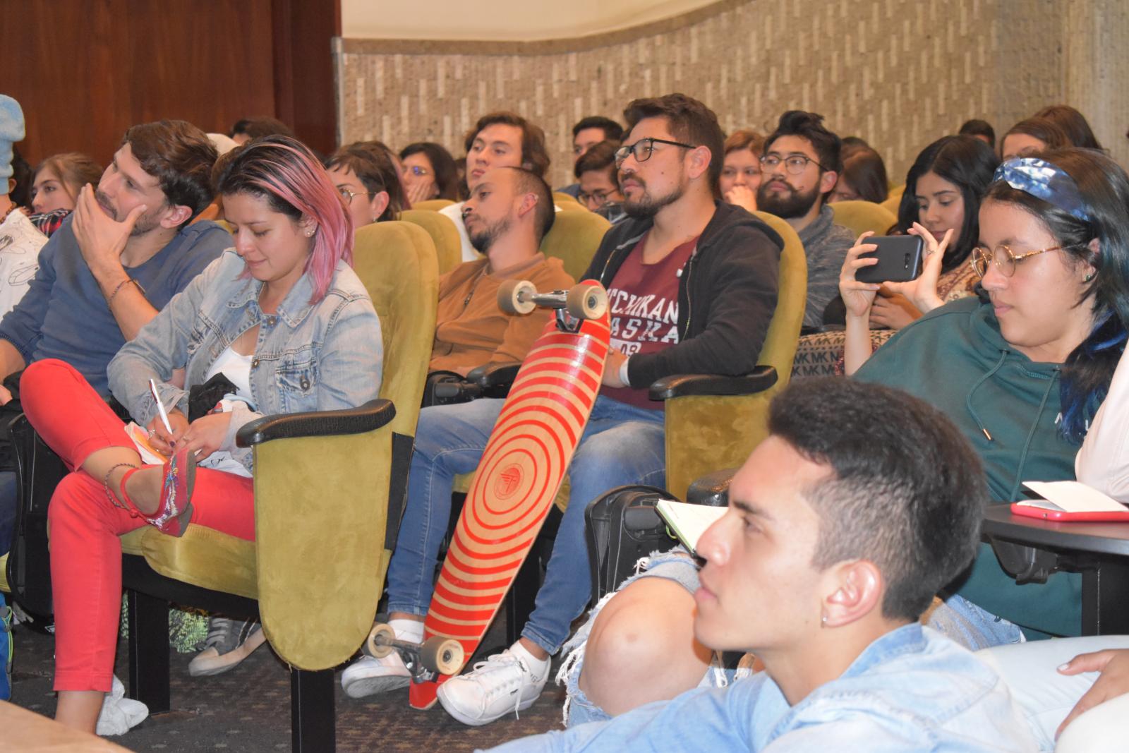 Conforme avanzaba la charla, el auditorio se fue permeando de una atmósfera de sensibilidad y melancolía. Después del medio centenar de sillas, se fueron ocupando los pasillos y el suelo. Dentro de la cabina de producción, una mujer, encargada de manejar las luces y el videobeam para el evento, no pudo contener el llanto. “¿Por qué lloras?”, le preguntó el fotógrafo. “Gracias a su trabajo sí hay esperanza de paz en el país”, respondió entre sollozos.