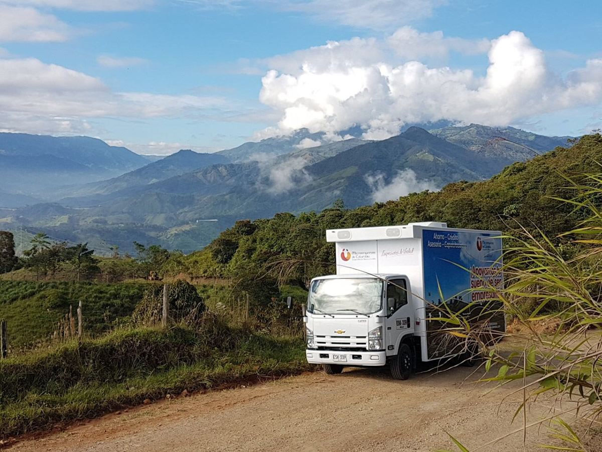 El sistema de oficinas móviles permite prestar el servicio sin que el costo sea igual al de la instalación de una oficina permanente en municipios pequeños. CORTESÍA MICROEMPRESAS COLOMBIA.