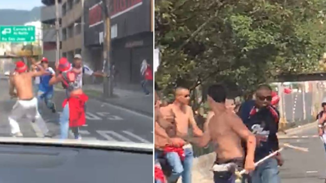 Y es que los videos son más que impresionantes, pues además de palos y puños, se puede ver a los hinchas del Medellín blandiendo machetes como si estuvieran en un campo de guerra, escenas que no se veían hace varios meses en la ciudad. Esta batalla campal que afectó el tráfico, sucedió en la Avenida Colombia con carrera 65, a unas diez cuadras del Estadio.
