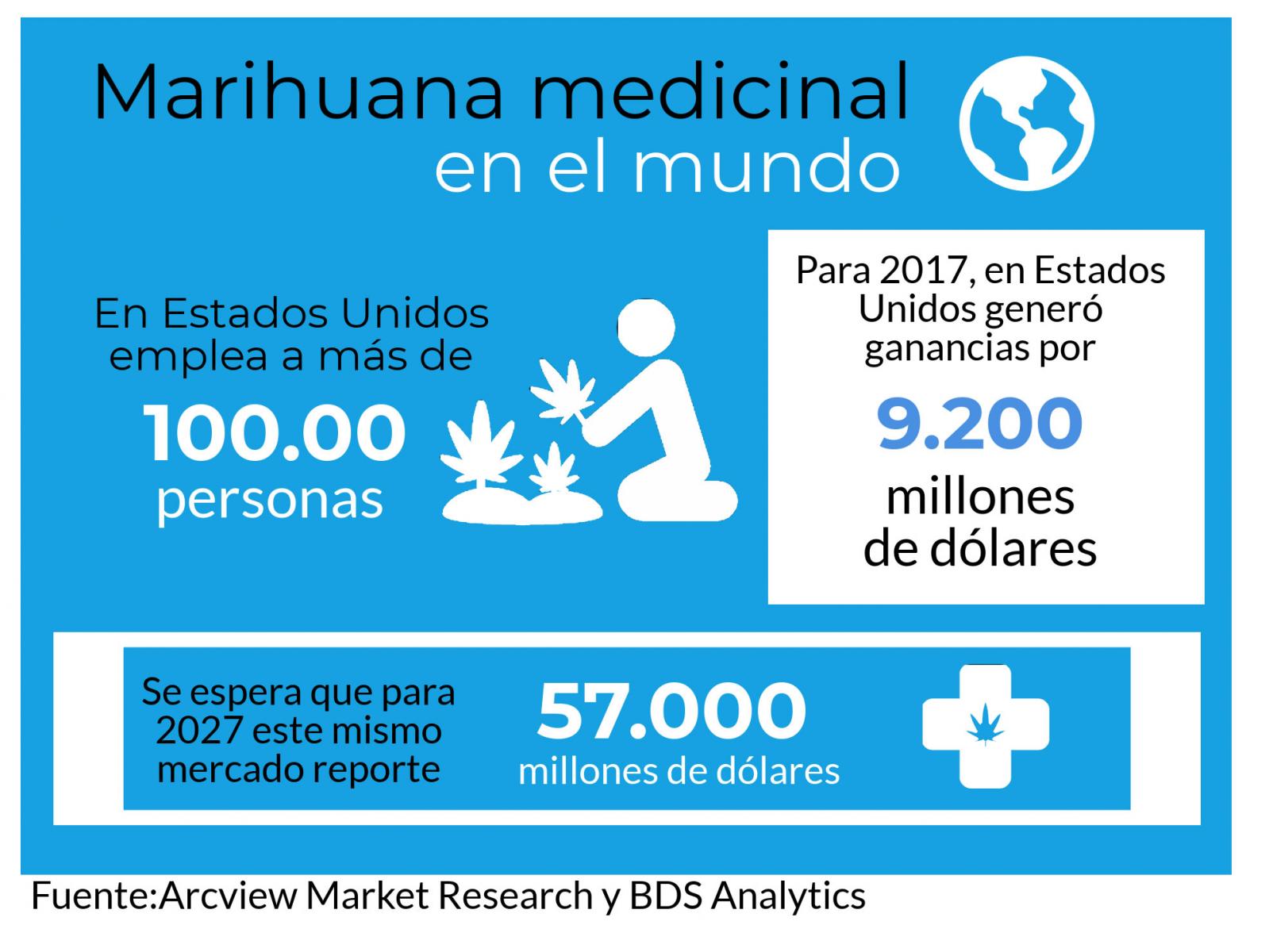 De acuerdo con los centros de investigación Arcview Market Research y BDS Analytics, el mercado legal de cannabis generó 9.200 millones de dólares en Estados Unidos en 2017, de los cuales el gobierno estadounidense recibió 1.400 millones de dólares por impuestos. La cifra reportada por ese mercado en ese país representa más que los ingresos por divisas por cuenta del turismo colombiano, que este año llegarán a 7.000 millones de dólares, y es casi la mitad de los ingresos por petróleo en Colombia, que este año podría llegar a 20.000 millones de dólares. Se espera que para 2027 el mercado crezca y generé 57.000 millones de dólares, con un estimado del 67 por ciento para el uso recreacional y el 33 para el uso médico. Cifras nada despreciables para cualquier país. Por si fuera poco, se estima que hay más de 100.000 personas trabajando en las 9.397 empresas que tienen licencia en Estados Unidos.