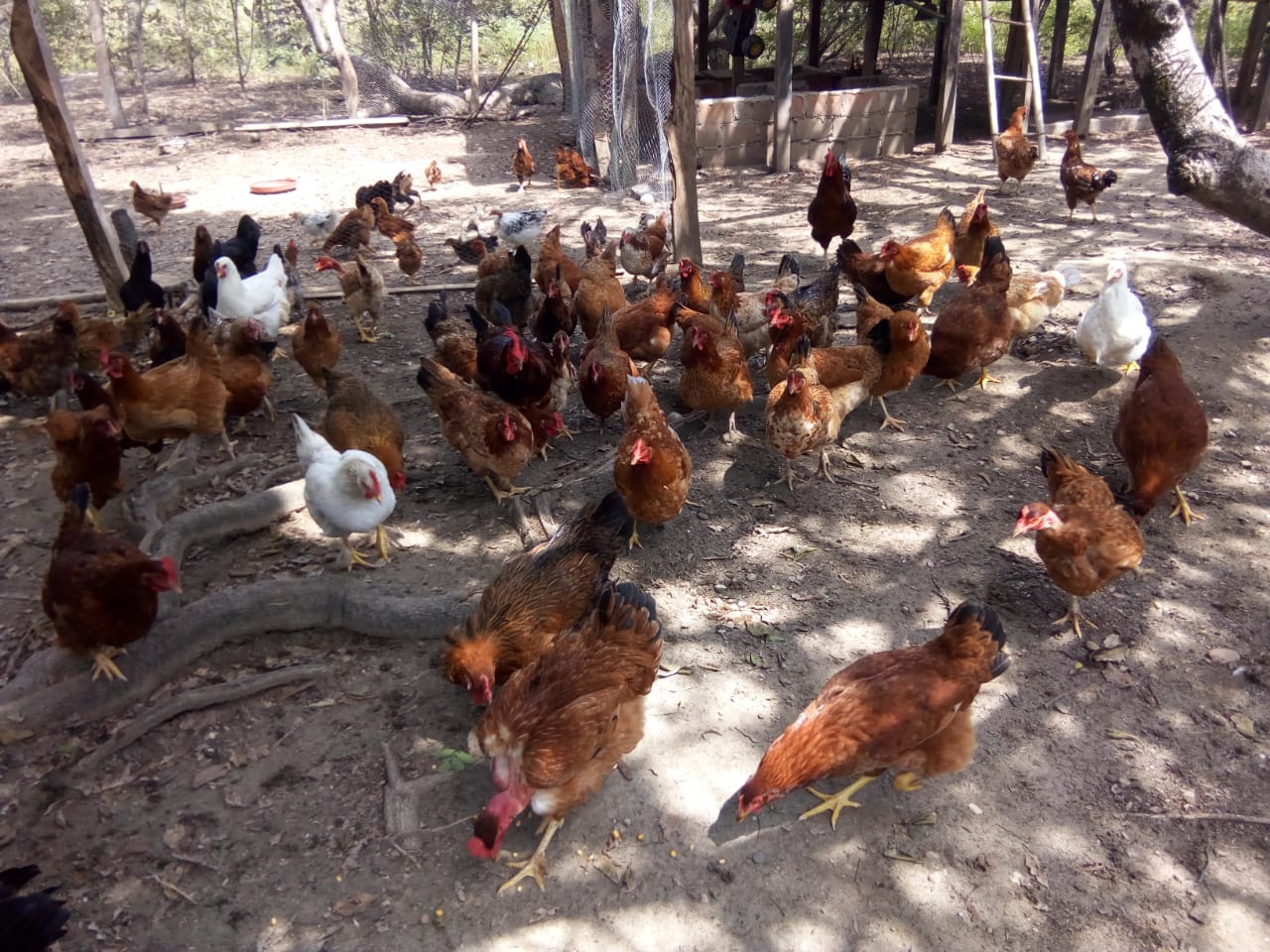 Perla empezó con unas 15 gallinas y poco a poco el batallón creció. Lo primero que hizo con su comunidad fue construir un aljibe, pues en esta región, situada junto al desierto de La Tatacoa, el agua escasea. Luego empezó a sembrar semillas nativas para darles alimento a los animales: matarratón, plátano cachaco, ají, moringa, yuca, frijol, maíz guacamayo, entre otros.