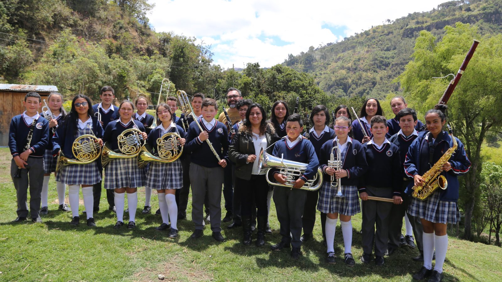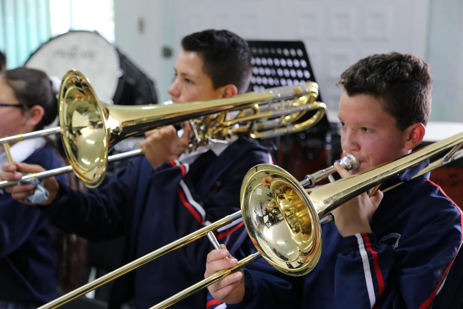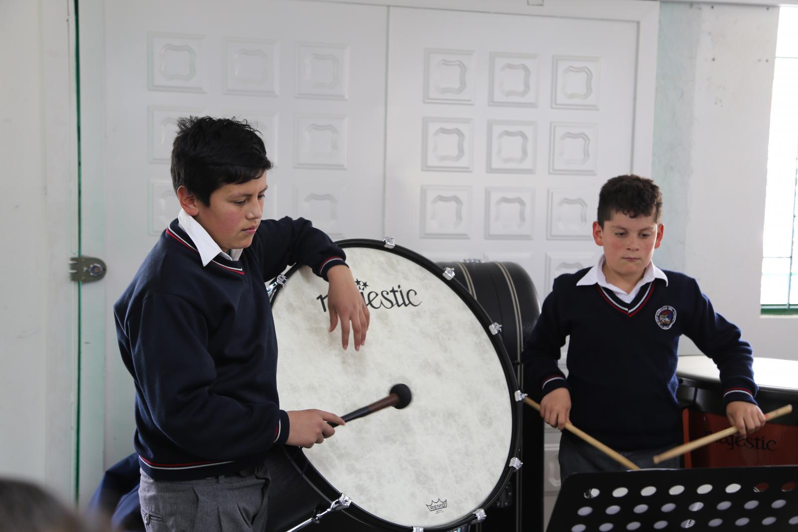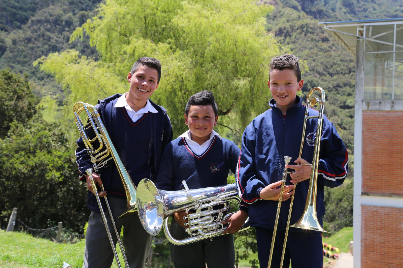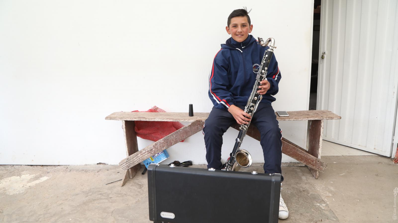 A seis horas de la Bogotá urbana, después de cruzar la laguna Chisacá y ver frailejones, colibríes y niebla, está la vereda La Unión, con menos de 100 habitantes. Allí, algunos estudiantes del colegio Juan De La Cruz Varela deben caminar una hora de ida y una de regreso para asistir a las clases gratuitas de música. Jaiden Gustavo Villalba es uno de ellos. Con tan solo 11 años, la ´raspadura´de la familia Villalba, -como le dice su madre por ser el menor de seis hermanos-, anda dos horas entre atajos y pastizales para llegar al salón. Limpia sus zapatos, y luego entra. Al ingresar toma su tuba, el mayor de los instrumentos de viento y el más grande. Aquel que a pesar de superarle en peso, carga algunas noches hasta casa para practicar. Jaiden coloca sus manos en los orificios, pone su boca en la boquilla de la tuba y empieza a tocar. “Me gusta tener un espacio para la banda, por eso trato de aprovecharlo. Yo sueño con ser profesor de música, y enseñarles a los otros niños a tocar y a cantar”, contó.