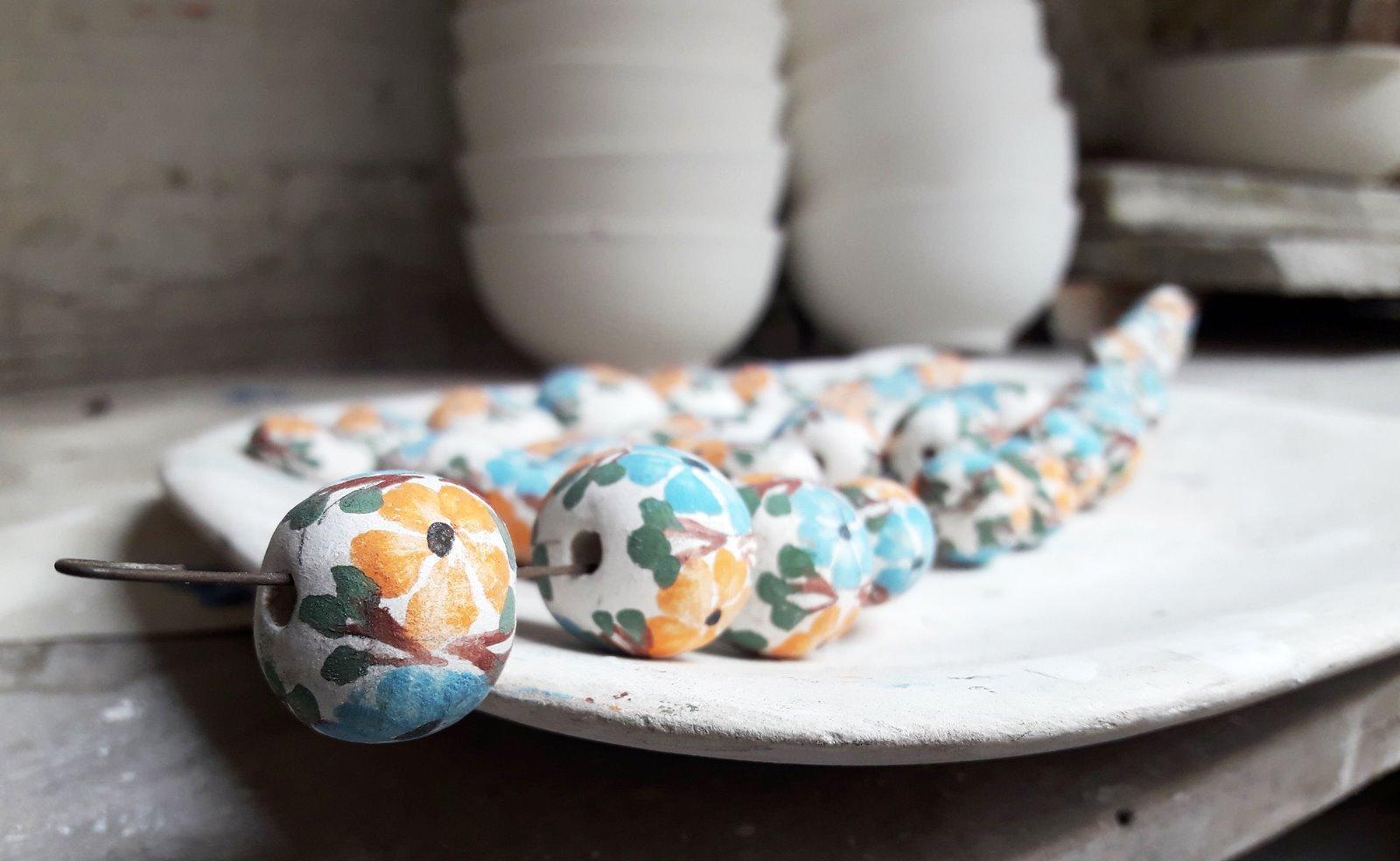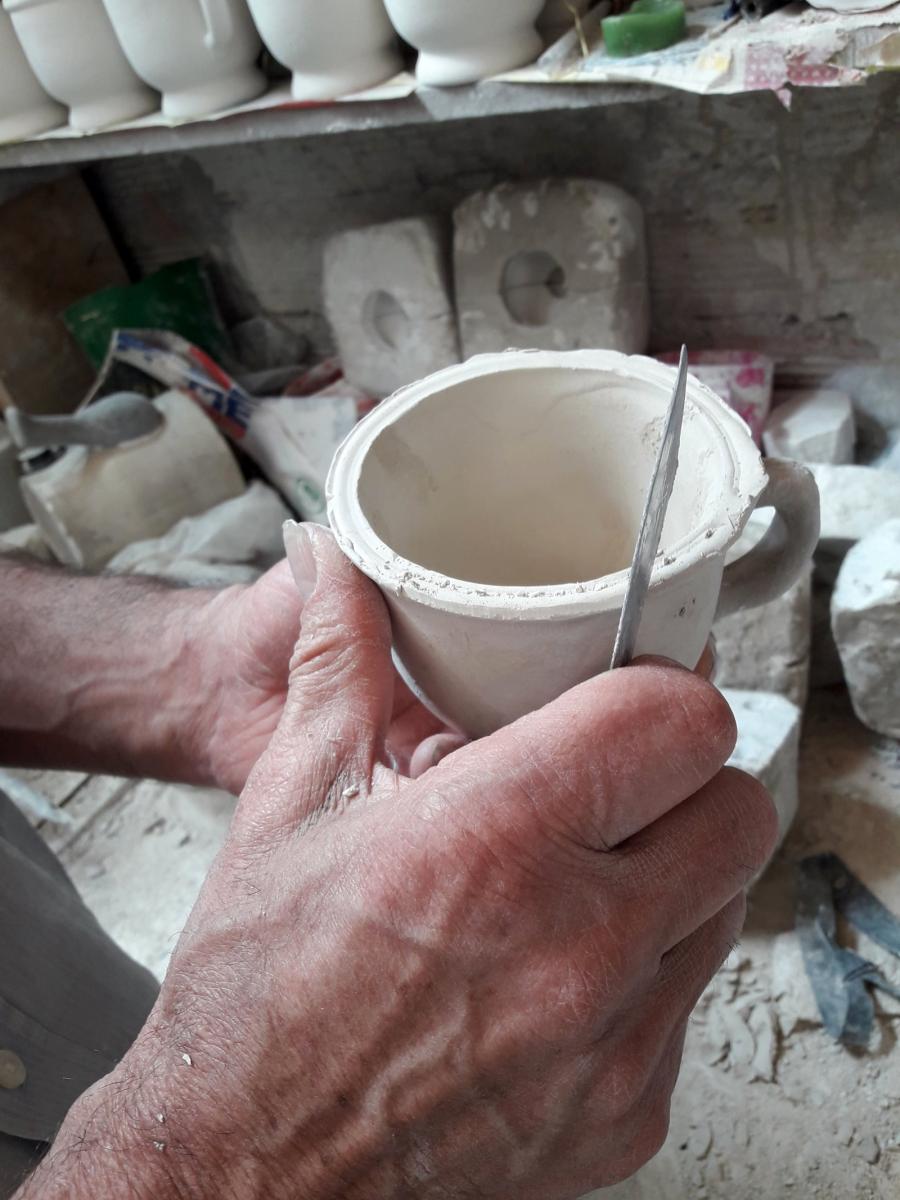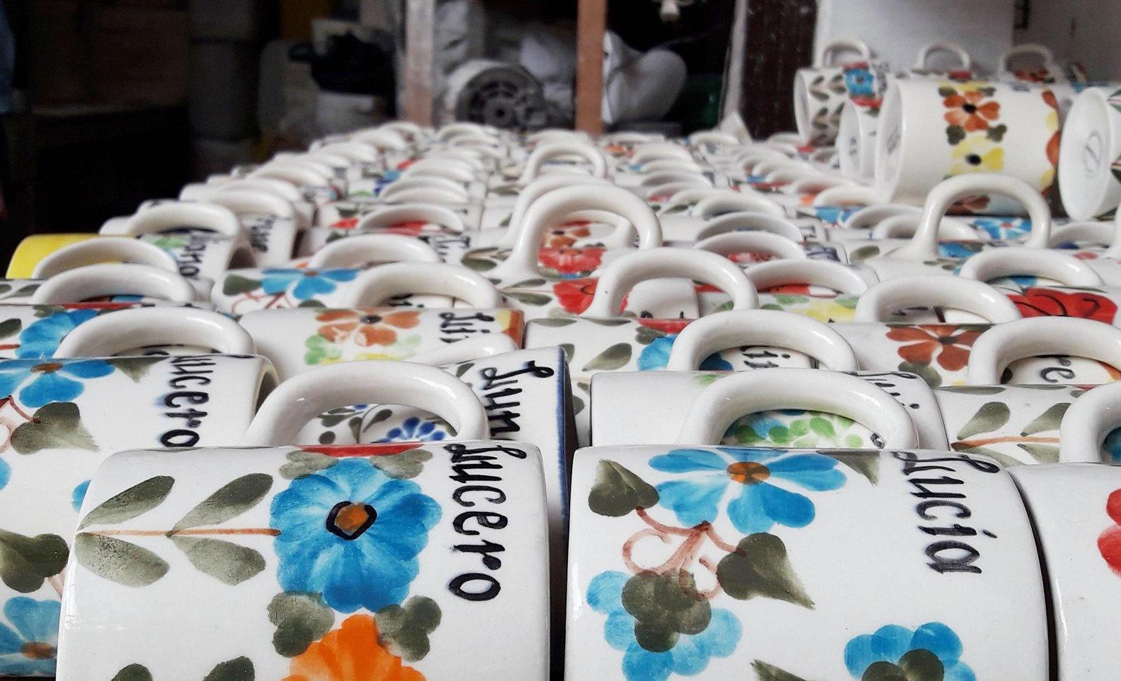 Las piezas -hechas de una mezcla de barro y minerales como cuarzo, fesdelpato y carbonato de calcio- son moldeadas en forma de pocillos, platos o jarras, por ejemplo, y secadas al aire libre durante 20 minutos. Luego, deben pasar dos veces por el horno: la primera cuando las piezas están en bizcocho, o en estado rústico, y la segunda luego de haber sido pintadas y sumergidas en un esmalte de cuarzo. Esta es la última etapa de la cadena de producción de las artesanías.