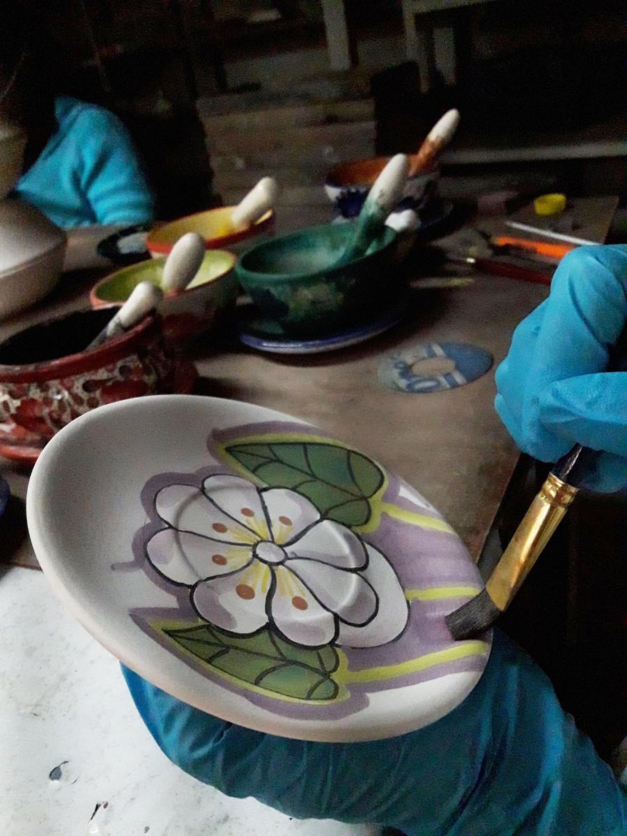 La destreza de las artesanas es innata. Ninguna estudió algo relacionado con la cerámica o la pintura, aunque en el pueblo hay institutos que enseñan esta técnica. Con delicadeza, cada una toma la cerámica y le da forma al diseño con los pigmentos. El tiempo que tardan depende de su habilidad para pintar.