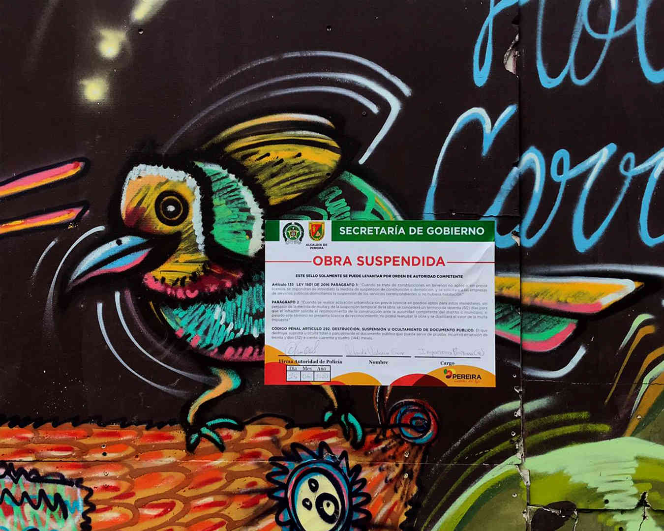 En la zona de los Alpes de Pereira, se construye, desde hace tres años, una edificación que está subdividida en tres partes. Construcción que tendría varias anomalías en su proceso y que, hace pocos días, fue frenada por parte de las autoridades. A continuación, se ve la foto de la suspensión.