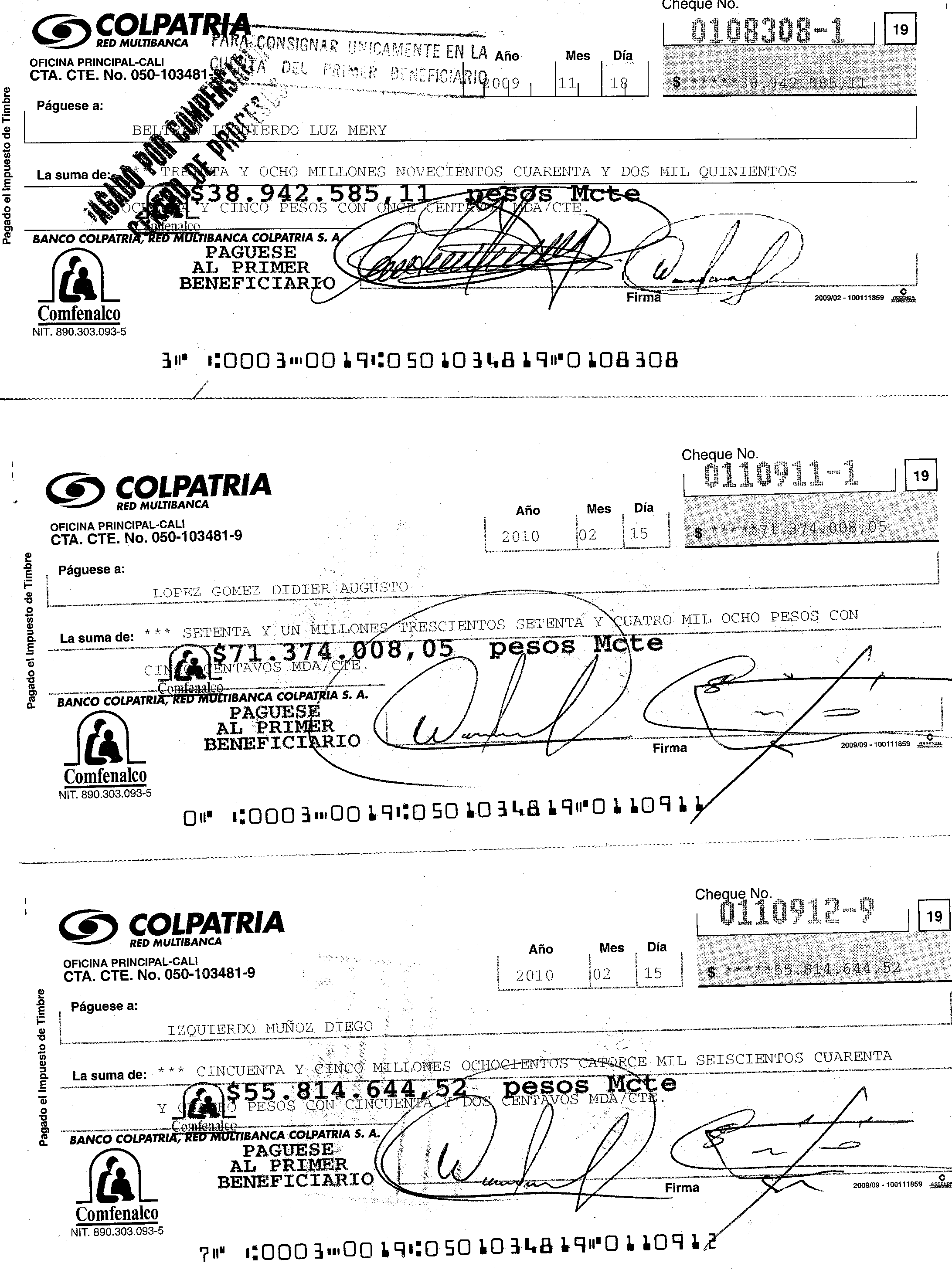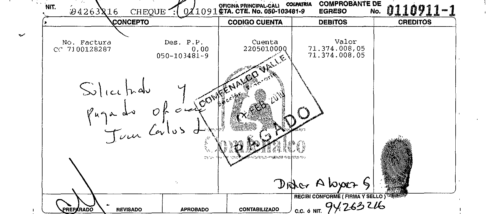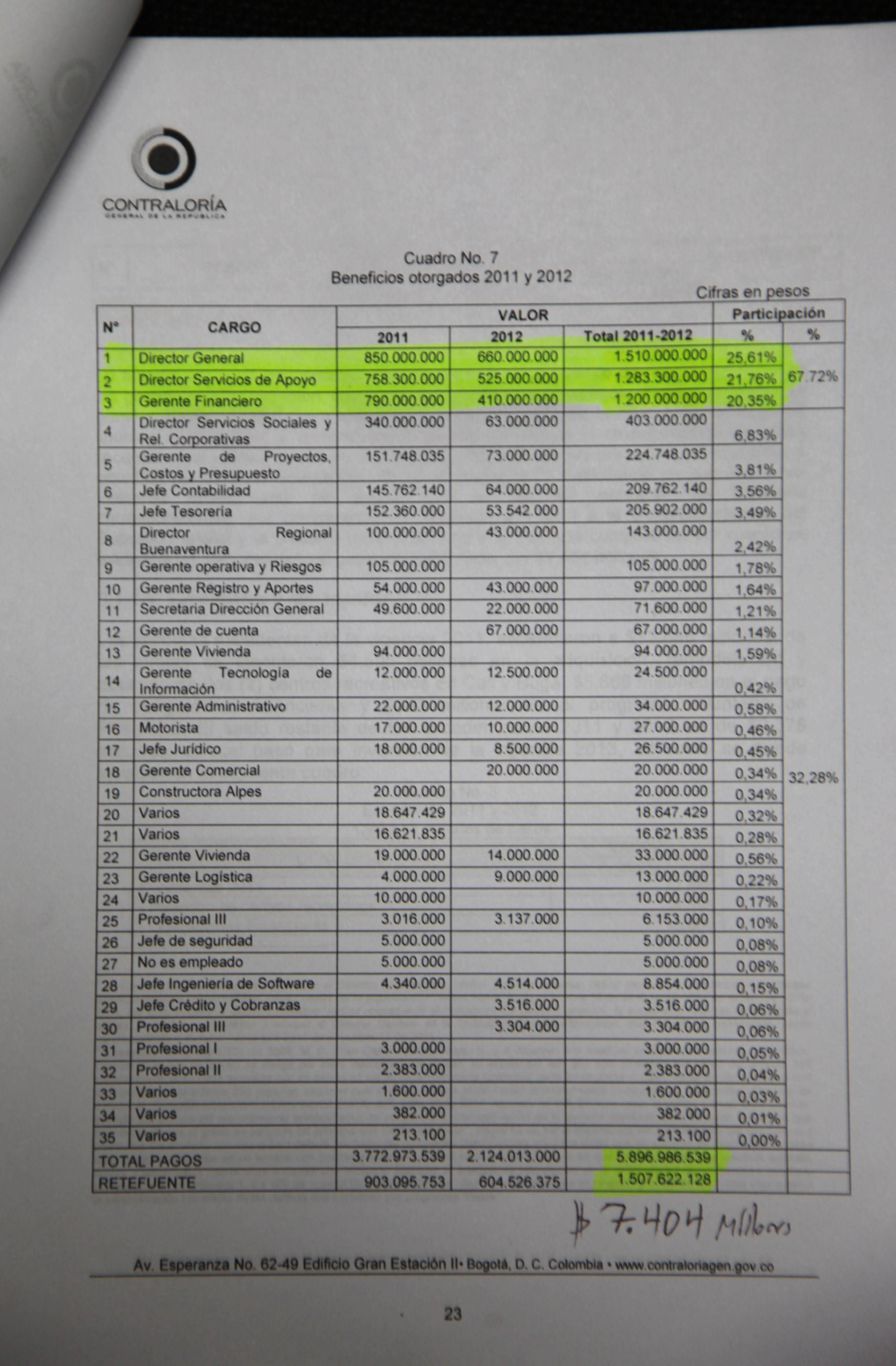 Las Cajas de Compensación Familiar tienen un gran poder económico y político, especialmente desde el gobierno del presidente Álvaro Uribe, cuando se decidió que manejaran millonarios recursos públicos para salud, vivienda y subsidio al desempleo. Hoy, las 43 cajas que operan en Colombia administran 12,8 billones de pesos al año y se han convertido en un componente importantísimo en el funcionamiento de los programas sociales del Estado. Obviamente manejar recursos públicos exige mucha responsabilidad, pero al parecer en Comfenalco Valle algo no muy claro está sucediendo con la plata de los colombianos. Esta caja es una de las más grandes del país. Tiene 1.250 empleados y mueve más de 100.000 millones de pesos solo por concepto del subsidio monetario proveniente de los aportes del 4 por ciento de la nómina que pagan las empresas por sus trabajadores afiliados. En sus más de 50 años, gracias a sus programas y centros recreativos y de formación, cientos de miles de vallecaucanos se han beneficiado y es hoy en día una de las empresas más reconocidas y admiradas en ese departamento. SEMANA tuvo acceso a varias denuncias e investigaciones internas en poder de los organismos de control, en los que se señala que en la Caja se estarían cometiendo serias irregularidades. Estas comprenderían desde la creación de una maraña de empresas para tercerizar servicios, cuyos dueños son familiares de altos ejecutivos, hasta el pago de millonarias bonificaciones a un selecto grupo de directivos. Esas irregularidades superarían 14.500 millones de pesos, según las auditorías realizadas entre 2011 y 2012. Juvenal Andrade Mayor, un contador público especializado en gerencia financiera y con diplomados en auditoría, ha realizado la mayoría de las denuncias. Andrade comenzó su carrera hace 13 años como auxiliar de caja en la sede de Palmira. Y gracias a su dedicación y profesionalismo, ascendió a jefe de auditorías de Comfenalco en 2011. Pero en marzo de 2013 fue despedido inesperadamente luego de presentar sus informes contables y denunciar sus hallazgos a las autoridades. Junto a él terminaron destituidos otros diez auditores de su equipo. Además a la esposa de Andrade, quien trabajaba como auxiliar de enfermería en la caja, también le cancelaron su contrato. Los informes de Andrade revelan detalles de la forma como algunos directivos se habrían apropiado, al parecer, de grandes sumas de dinero que salían de los fondos que maneja la caja. Por ejemplo la auditoría determinó, al hacerle un arqueo a contratos de servicios con terceros celebrados en 2011 y 2012 por 3.541 millones de pesos, que 20 personas naturales y tres jurídicas facturaron el 55 por ciento. Lo curioso es que casi todas tienen algún vínculo familiar con directivos de Comfenalco. Uno de los casos que más llamó la atención es el de Guillermo Ceballos Arias, antiguo gerente de cuenta de Comfenalco. En las facturas de cobro y cheques girados por la Caja aparecen pagos millonarios a su esposa, suegros, sus cuñados y concuñados (Ver cheques en estos enlaces: uno, dos, tres). La auditoría no pudo demostrar si los pagos se debieron a servicios prestados o no. Lo cierto es que Ceballos fue despedido en 2013, pero lo más insólito es que al parecer salió indemnizado y con cartas de recomendación. Un caso parecido ocurrió con los pagos a Transportes Montenegro y a Didier López Gómez. Entre ambos supuestamente trasladaron a empleados de Comfenalco a otras ciudades del Valle y facturaron 191 millones de pesos por 278 recorridos en diez meses, es decir, casi un viaje por día. Sin embargo, “no se evidencia que los servicios facturados realmente correspondan a servicios prestados”, dice un informe de auditoría fechado en junio de 2012, en poder de SEMANA. Pero ahí no terminan las denuncias. Otras dos empresas de transporte, Transánchez y la sociedad Asesoramos y Administramos Global, se beneficiaron con millonarios pagos. El problema es que esas empresas tienen un cordón umbilical con el gerente financiero de Comfenalco, Wílmer Ramírez Londoño. Resulta que los dueños de ambas son su sobrina y su cuñada. Y un familiar de Ramírez aparece como secretario en una y auditor en la otra, según los certificados de la Cámara de Comercio. Las denuncias en poder de SEMANA también revelan que los directivos de Comfenalco recibieron, solo entre 2011 y 2012, más de 5.800 millones de pesos en incentivos, algo que según la ley y la propia Contraloría General, está prohibido, además, porque los excedentes de las Cajas de Compensación deben destinarse a programas de bienestar y recreación de los trabajadores afiliados. (Ver información Contraloría) De todos los incentivos repartidos, el 67 por ciento, es decir 3.993 millones de pesos, quedaron en manos de tres personas: Felice Grimoldi, director general, recibió 1.510 millones. A Gustavo Adolfo Silva, director de servicios de apoyo, se le asignaron 1.283 millones, y el mencionado Ramírez obtuvo 1.200 millones. La Contraloría General corrobora este hallazgo y advierte, en un informe de auditoría del año pasado, que Comfenalco Valle “realizó pagos por concepto de beneficios por mera liberalidad a un restringido número de funcionarios directivos y administrativos”. Lo preocupante es que tanto las auditorías internas como la de la Contraloría encontraron inconsistencias en los aportes de las empresas afiliadas. Mientras que la interna habla de un faltante de 1.178 millones de pesos, la Contraloría halló que asciende a 684 millones de pesos. Ese y otros descuadres, como el que se registró en el pago del subsidio familiar a los trabajadores, revelarían la posible existencia de un fraude, “ya sea por hurto, o porque se pagaron a afiliados que no tienen derecho”, dice el informe de la auditoría interna. Con el subsidio al desempleo también se descubrió otro hueco. Como Comfenalco entrega ese dinero en tarjetas prepago redimibles en