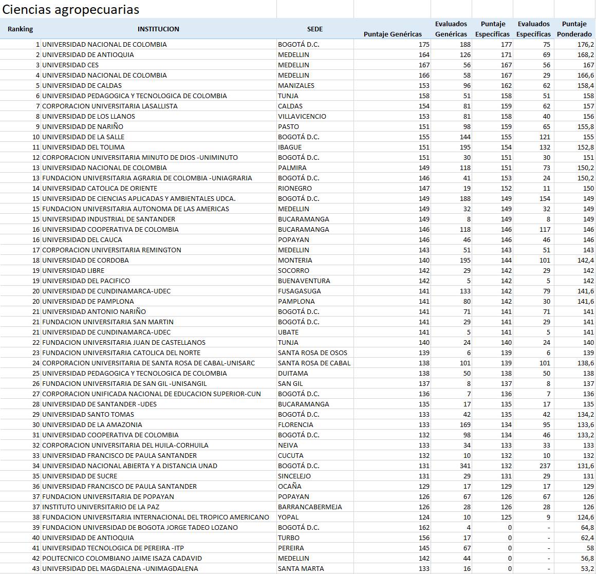 Lea en Dinero.com los rankings completos de todas las profesiones. Este es el ranking de ciencias agropecuarias: