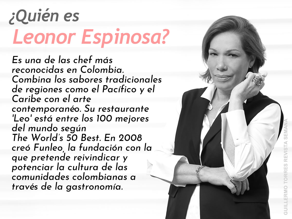 Leonor Espinosa corta de un tajo su fama de dura, esa que se ha labrado entre quienes aseguran que lograr una charla o entrevista con ella es difícil. Y la corta con una enorme sonrisa. “Yo no tengo tiempo para sentarme a responder 20 preguntas en el computador”. Quizá tenga razón. Ser la Mejor Chef Femenina de Latinoamérica –según The World’s 50 Best– debe tomarle tiempo, al igual que estar metida de cabeza en Leo, el mejor restaurante de Colombia y uno de los 100 mejores del mundo de acuerdo al mismo listado.