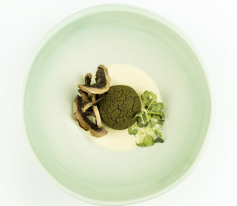 Dos platos más del menú en ‘Leo’: Indios, reducción trifísica, cubio y ulluco (izq); Kapeshuna y Santamaría de anis con hongos (der).